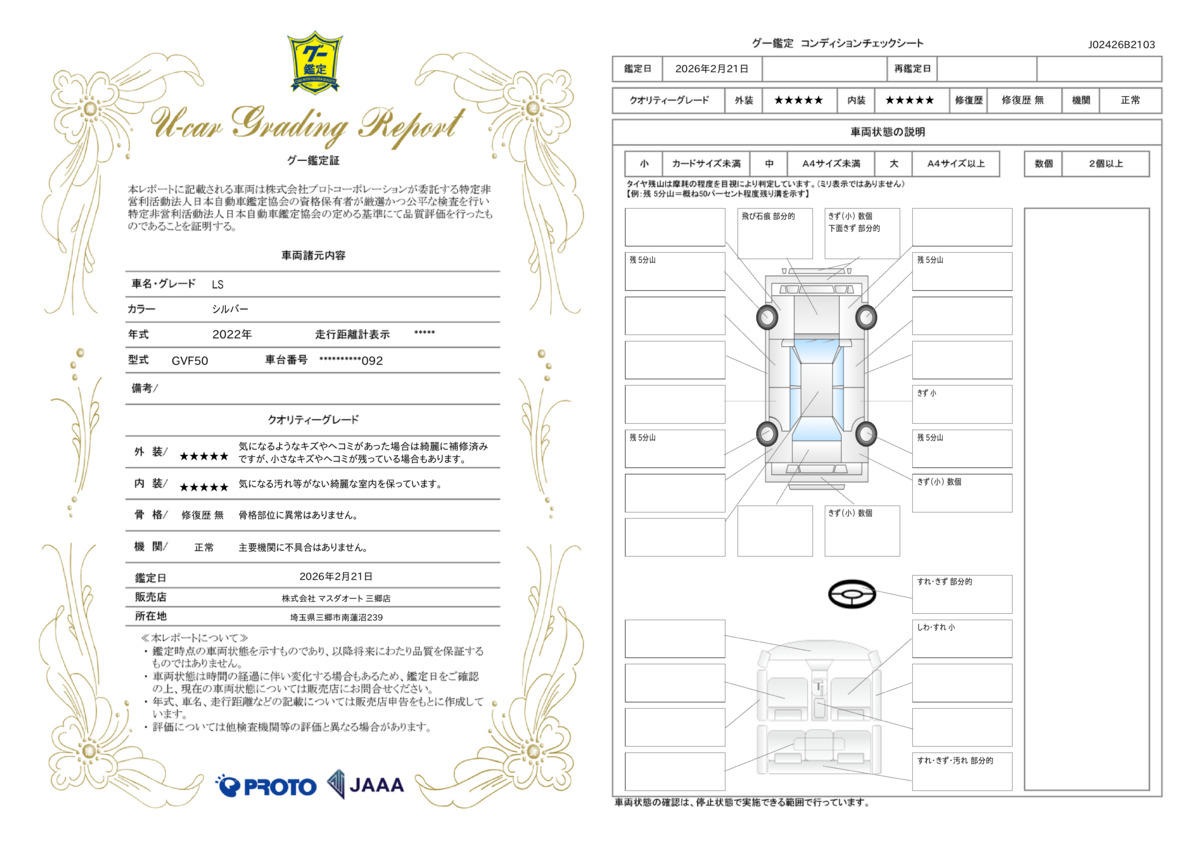 [保証付]:2027(令和9)年4月まで・100000km ※いずれか早い時期が保証適用の条件となります。 ◇レクサスメーカー保証を継承して納車いたします!!保証継承にかかる費用は車両本体価格に含んでおります。 |