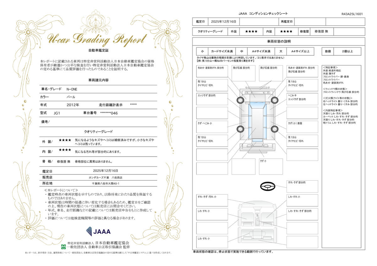 | 保証修理受付先 | 日本国内のHondaCars店、U−Select店であればどこでも修理対応が可能です。別途ホンダトータルケア(無料)にご登録頂ければ購入店舗までの無料ロードサービスもございます。 |