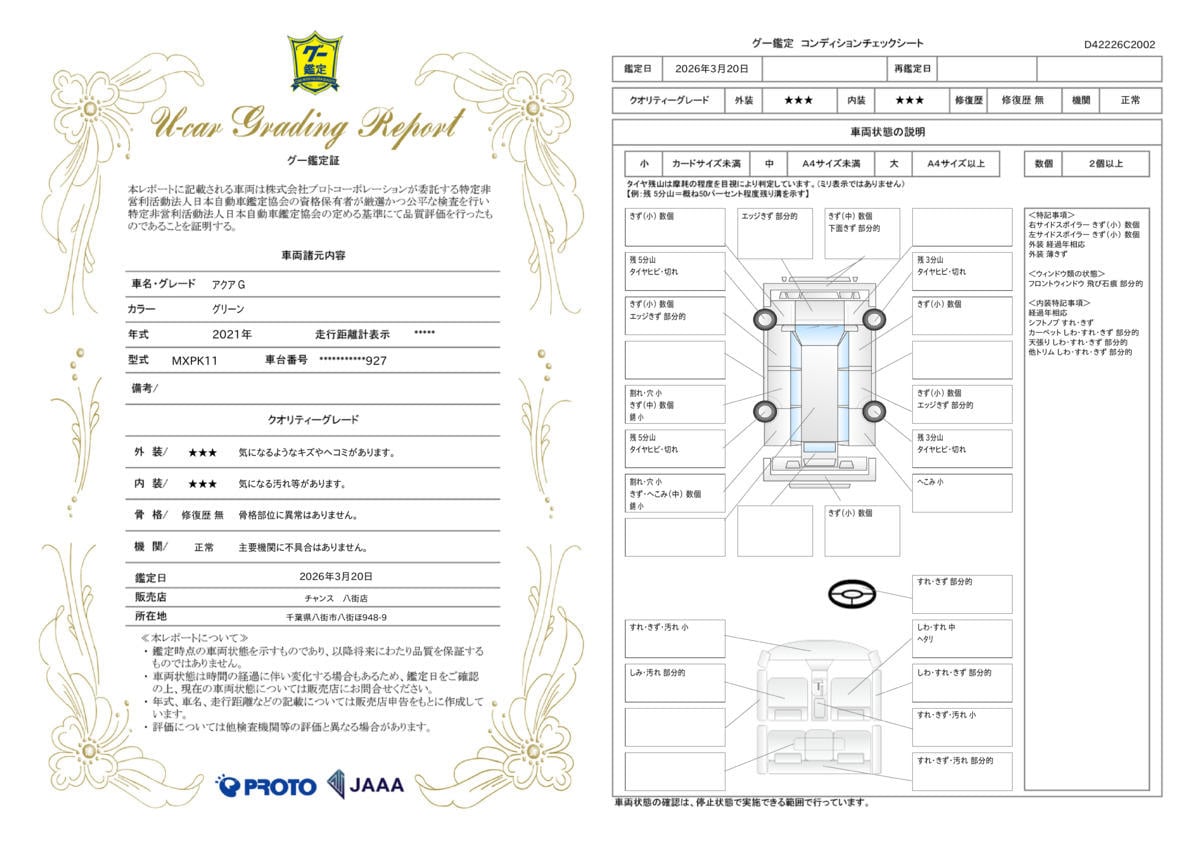 修復歴 なし 車体色 グリーン