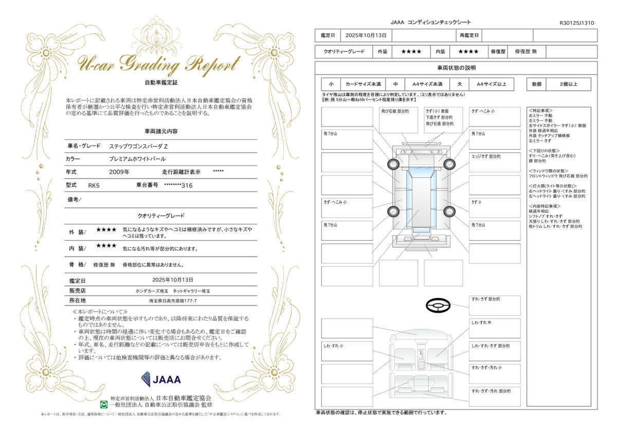 内装 星星星星星 修復歴なし