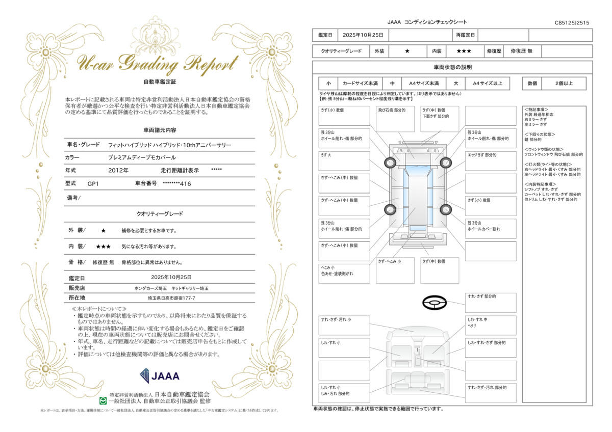 Honda認定中古車です。認定条件は修復歴がない車両に限定、さらに第三者機関の車両状態証明書を取得しております。無料で走行距離無制限の保証が3ヶ月付きます。保証は全国のホンダ販売店をご利用いただけます