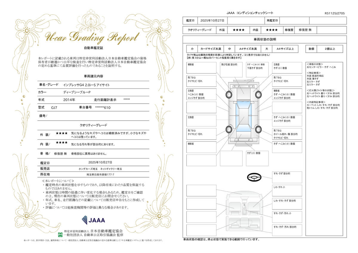 スバル インプレッサG4 2.0i−Sアイサイト 禁煙車 ワンオーナー 4WD