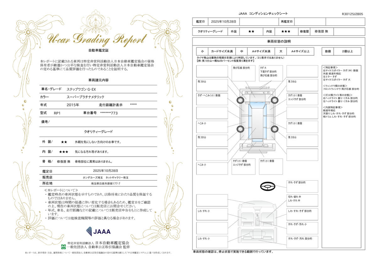 納車前の車検・点検費用に保証費用・当社登録手数料・車庫証証明費用に登録車の場合には自動車税未経過分も含まれております。さらに第三者機関による内外装について車両状態証明書を取得しており安心です。 27