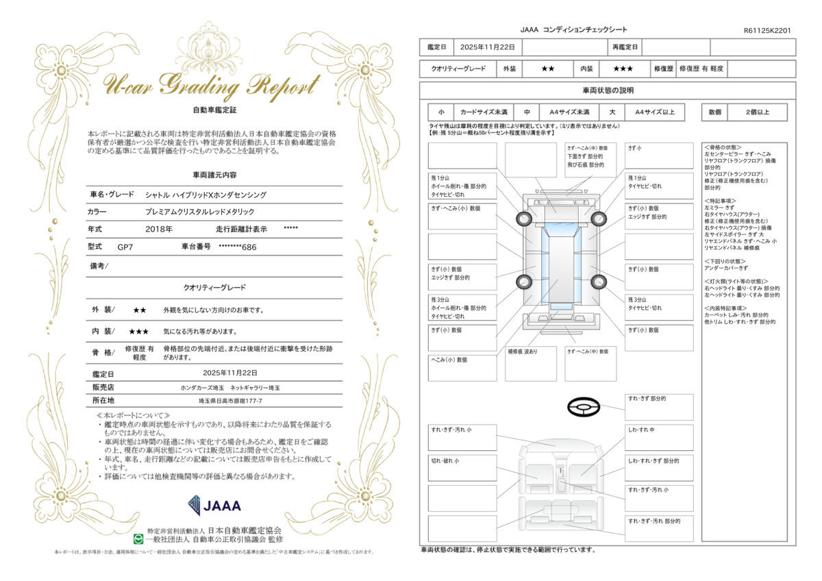 納車前の車検・点検費用に保証費用・当社登録手数料・車庫証証明費用に登録車の場合には自動車税未経過分も含まれております。さらに第三者機関による内外装について車両状態証明書を取得しており安心です 25