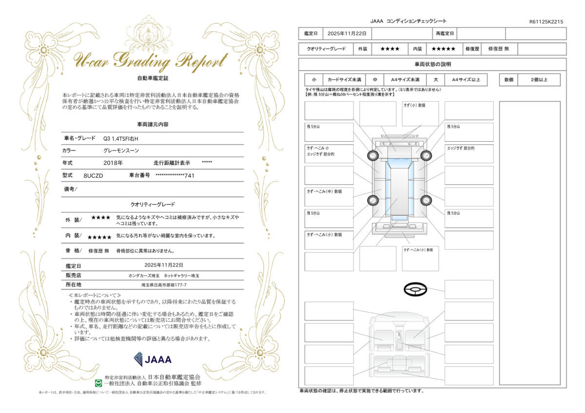 アウディ Q3 1.4TFSI /ワンオーナー/禁煙車/純正ナビ/ETC/フルセグ/バックカメラ/音楽録音再生/Bluetoothオーディオ/CD/DVD/電動シート/シートヒーター/電動リアゲート/純正アルミホイール/スマートキー