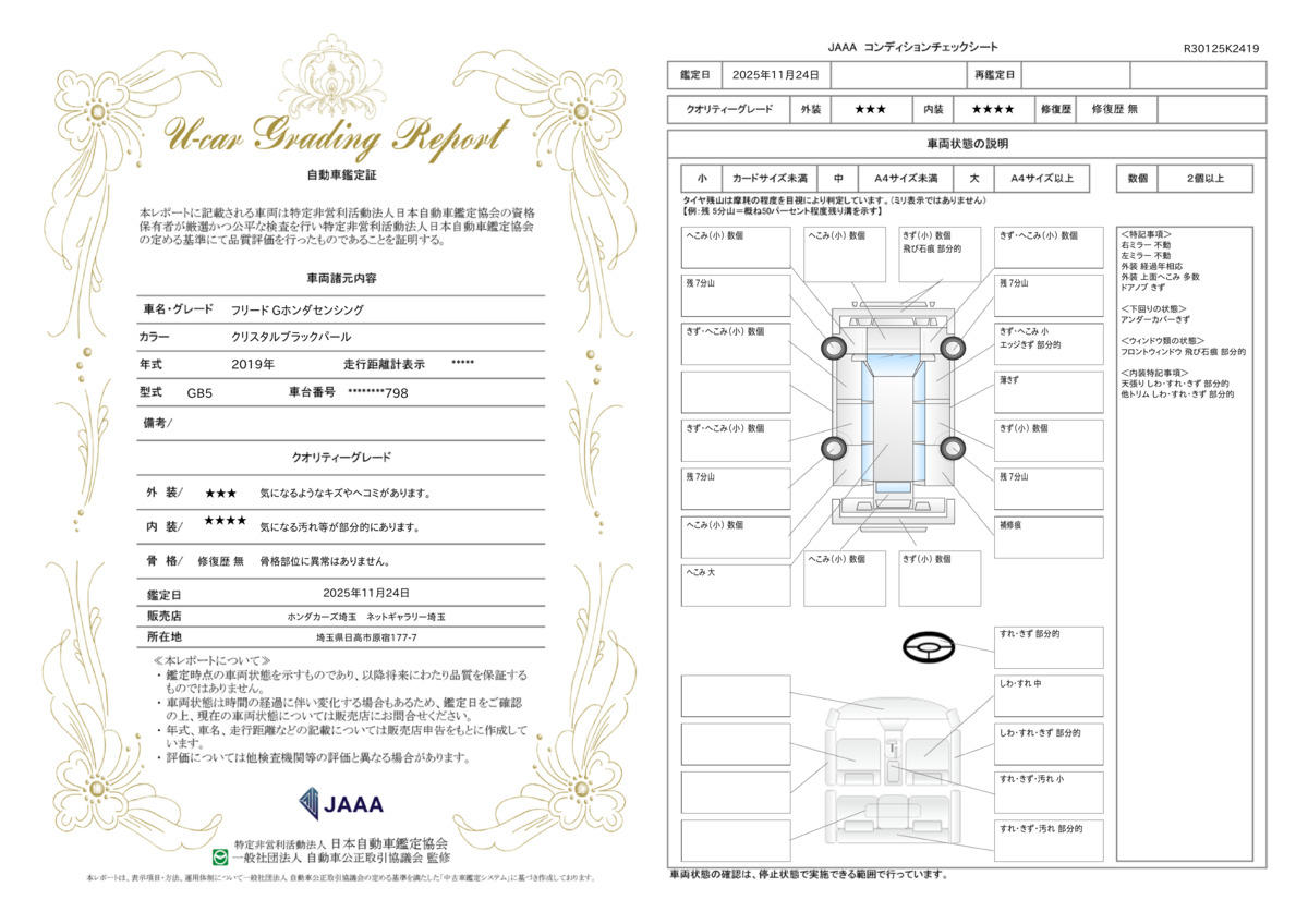 [保証付]:12ヶ月・走行無制限 ●納車から1年間の無料保証(ホッと保証)が付いています。万一の保証修理は、全国のホンダディーラーをご利用いただくことができます。お近くのお客様も遠方のお客様も安心してご購入いただくことができます。 |