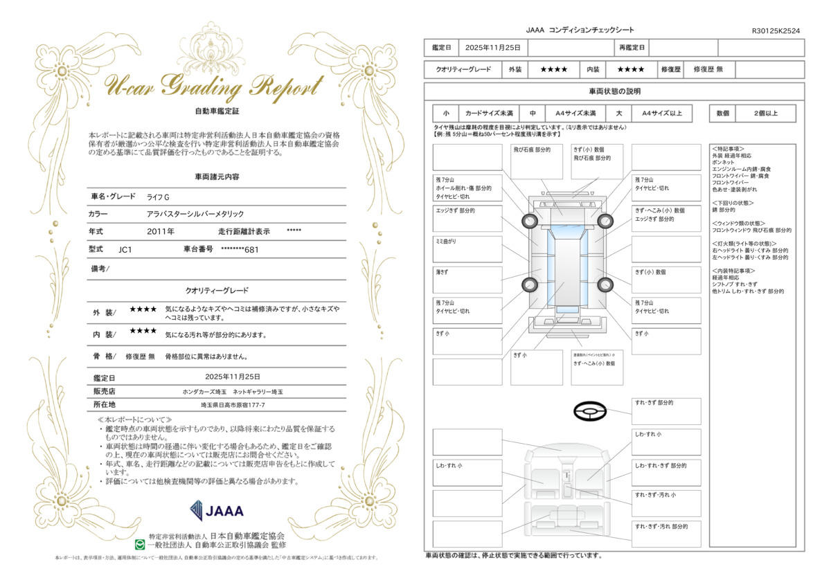 修復歴 なし 車体色 アラバスターシルバーメタリック