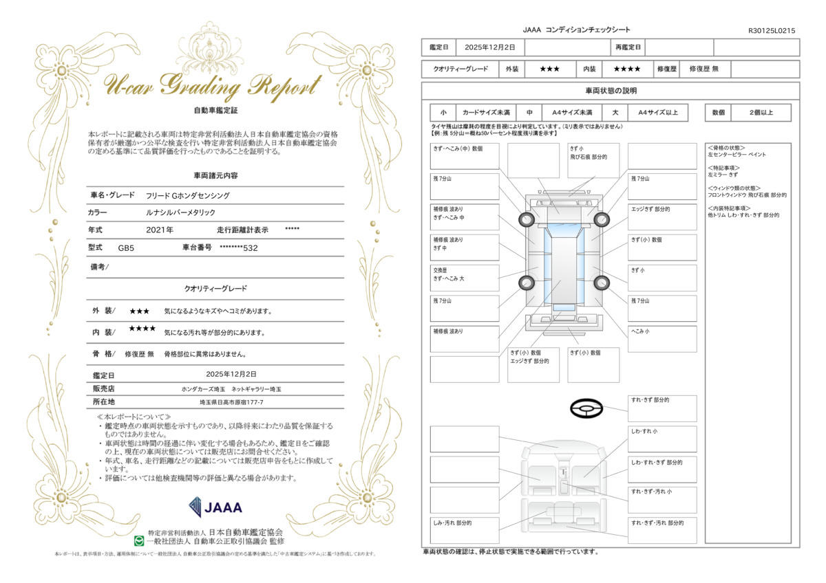 当店は全車JAAA鑑定協会にて鑑定証を付け販売しております。鑑定書の見方・ポイントをご覧になられてください。 34