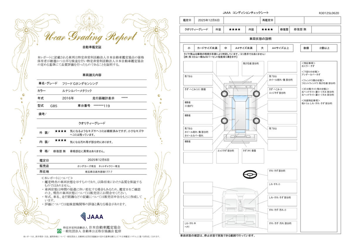 Honda認定中古車です。修復歴がない車両に限定、さらに第三者機関の車両状態証明書をすべての車両で取得しております。U−Select Premiumは初度登録から5年・5万km以内で無料で保証が2年付きになります。