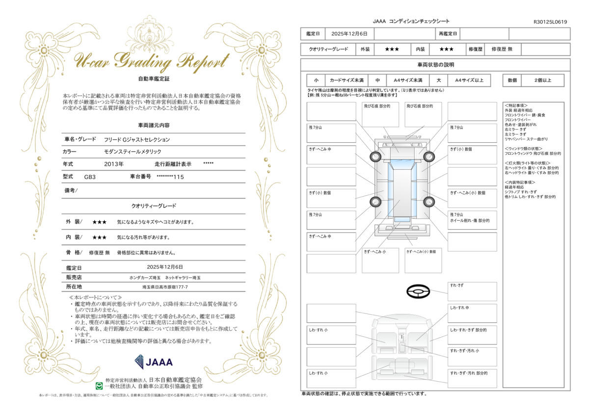 ホンダ フリード Gジャストセレクション ワンオーナー 禁煙車 当社点検パック実施済車