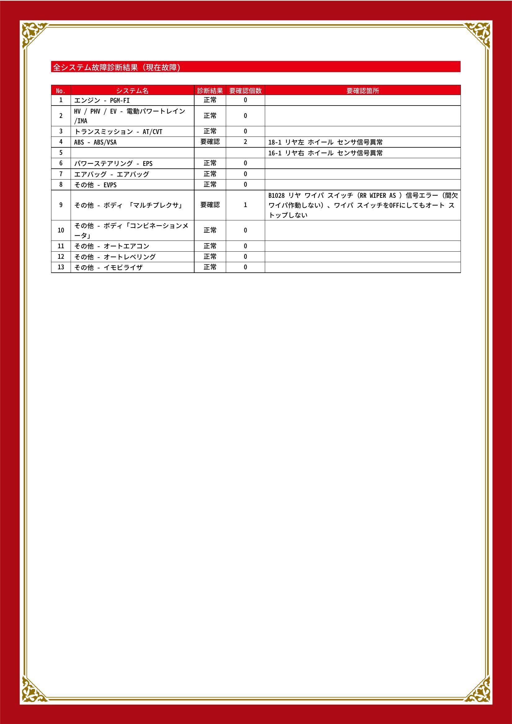 | 保証項目 | |