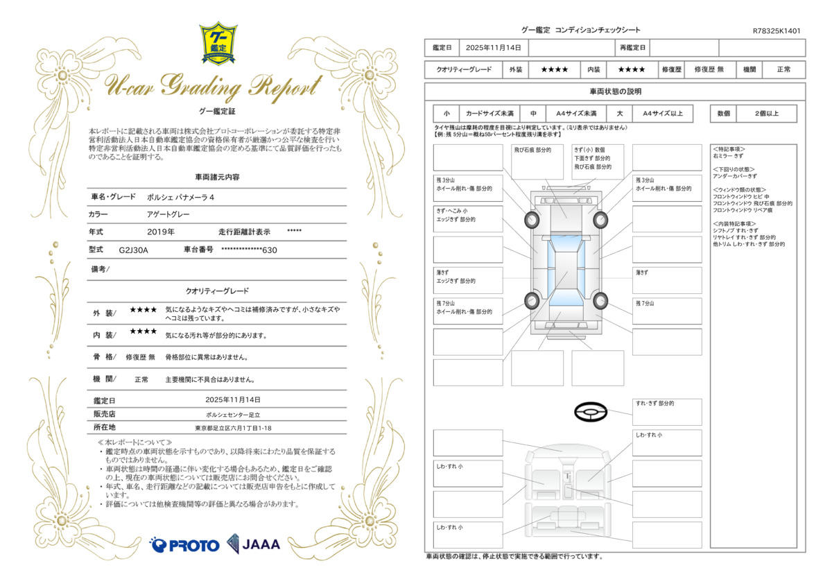 [保証付]:12ヶ月・走行無制限 12ヶ月間の認定中古車保証に加え、ポルシェアシスタンスが付属しています。新車保証と同レベルの安心をご提供しています。ポルシェアシスタンスは、お車がトラブルの際、充実したサポートをご提供致します。 |
