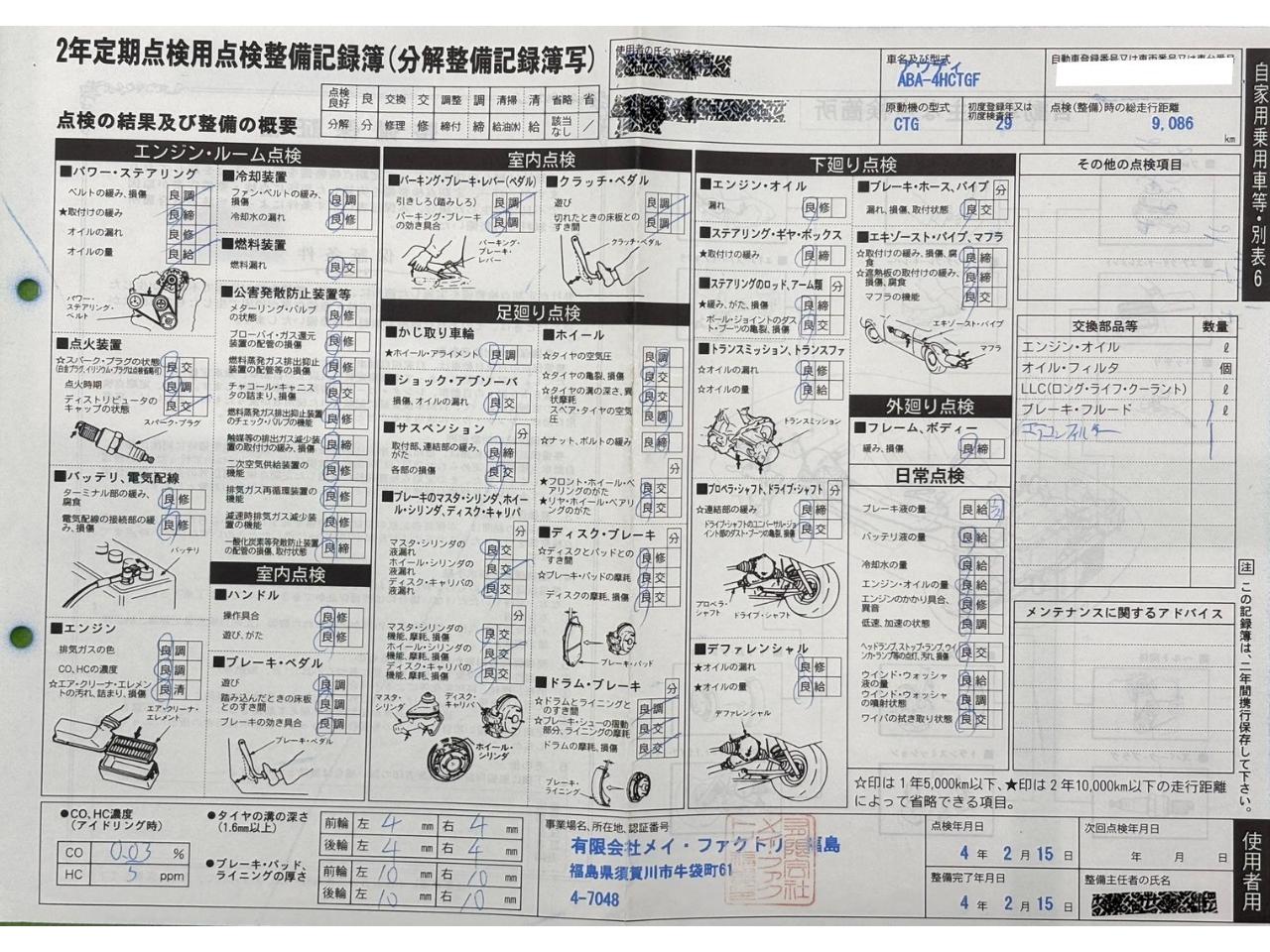 装備内容備考:ACコンプレッサー内部のコーティング剤、マイクロロンAFを施工します。コンプレッサー内部摩耗を低減し寿命を延長、さらには燃費アップも期待できます。夏場は冷却効率が向上し、よく冷えます。 |