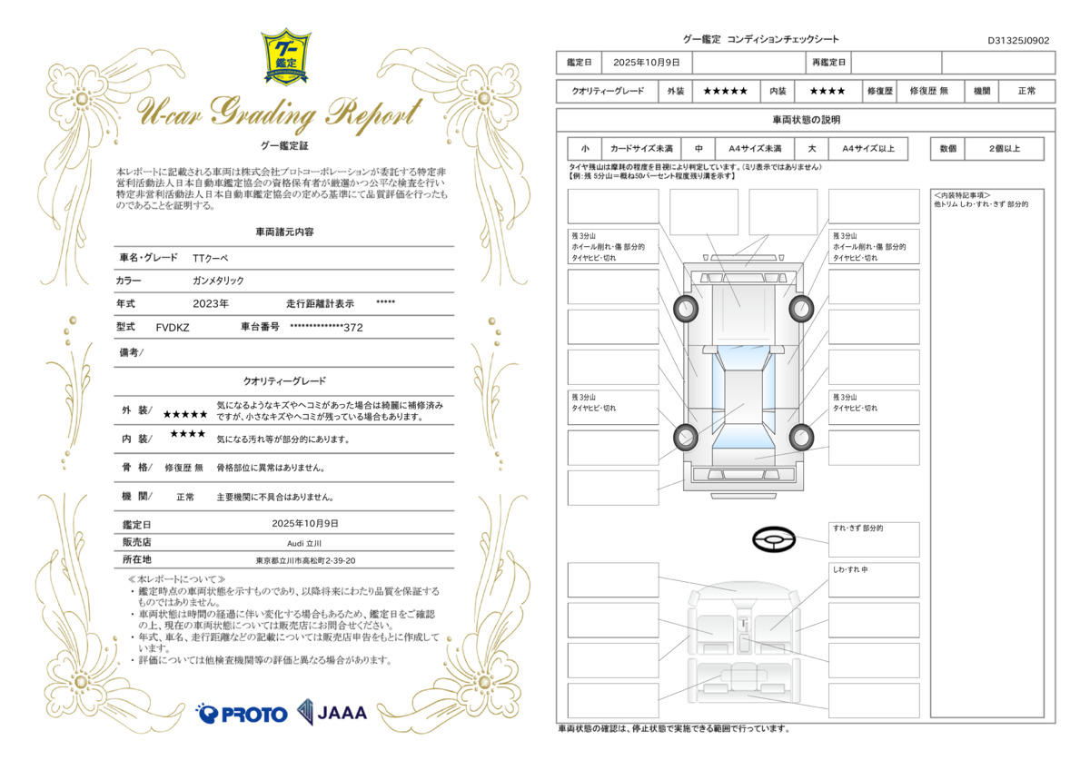 〜Audi認定中古車とは〜 1.Audi正規輸入車であること。2.新車登録時からの正規メンテナンスノート(整備記録)があること。3.初年度登録日から8年以内であること。4.走行距離9万キロ以内であること。5.修復歴車、改造車でないこと。