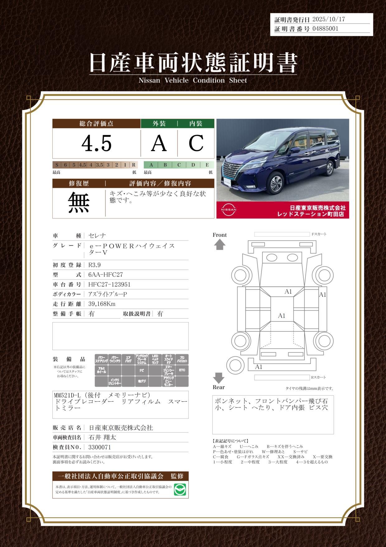 大切な愛車のパーツ類をご購入から2年間無料保証!(走行距離無制限):無料点検整備付き(1ヵ月または1,000キロ点検が無料です):信頼の日産サービス工場で全国どこでも点検&修理を行えます。