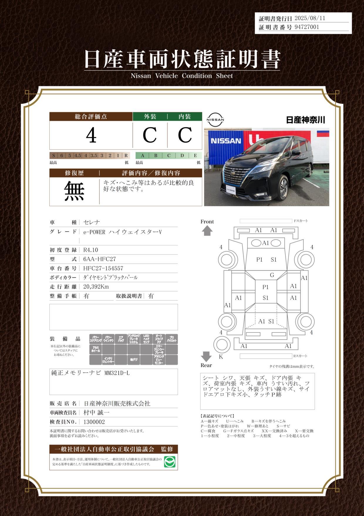 日産 セレナ 1.2 e−POWER ハイウェイスター V