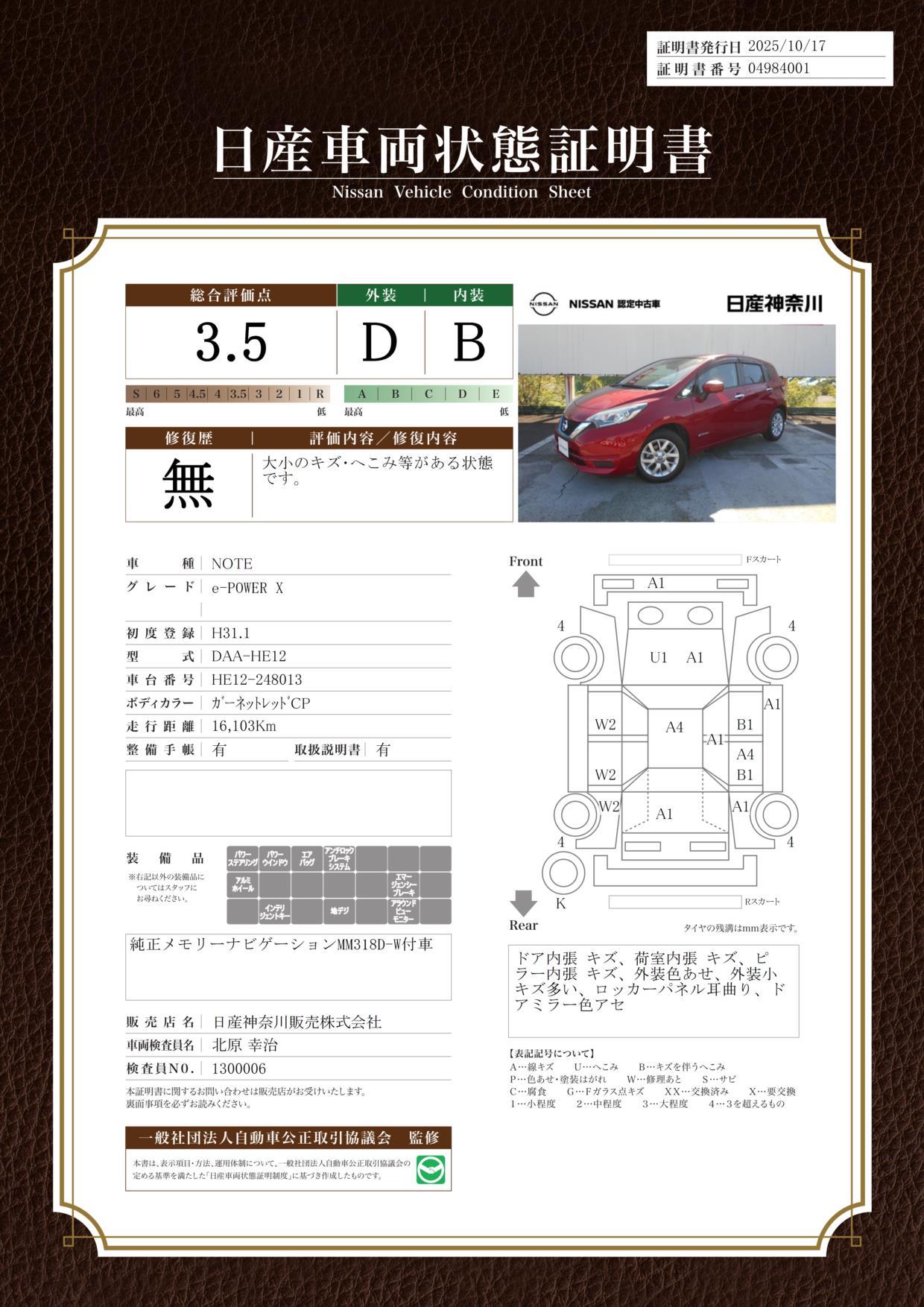 ご納車後 一ヶ月又は1000キロ目安の無料点検がございます。日産プリンス神奈川の61店舗はもちろん、日産整備工場で保証整備が受けられ安心です!納車の際にご予約を承ります、スタッフにご用命下さいませ。