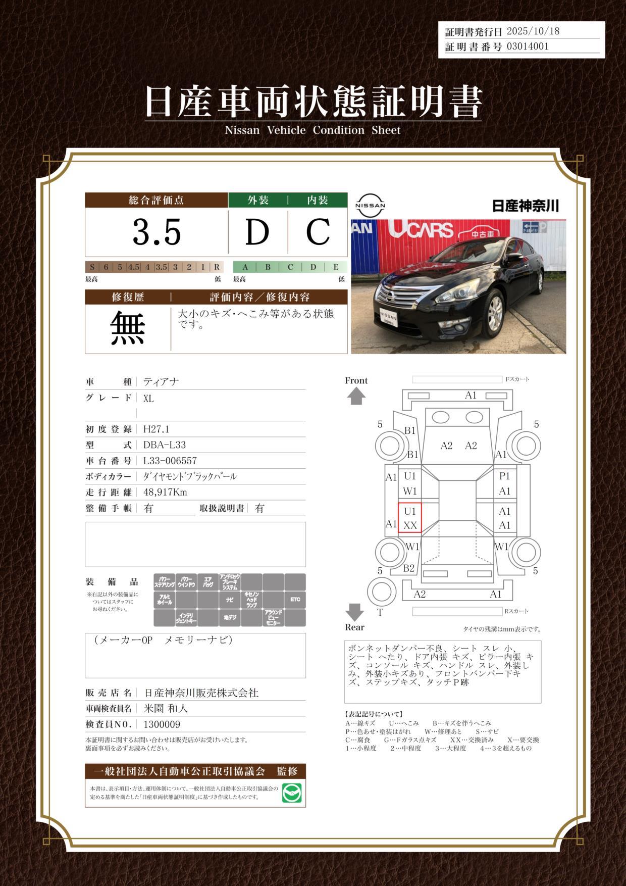 プレミアム認定中古車ならさらに安心走行距離無制限、大切な愛車のパーツ類を2年間無料保証!全国の日産サービス工場をご利用いただけるので、万が一お出掛け先でトラブルが発生しても安心です。(日産車以外もサポートいたします)また、1ヶ月又は1000km走行時に、無料点検を実施