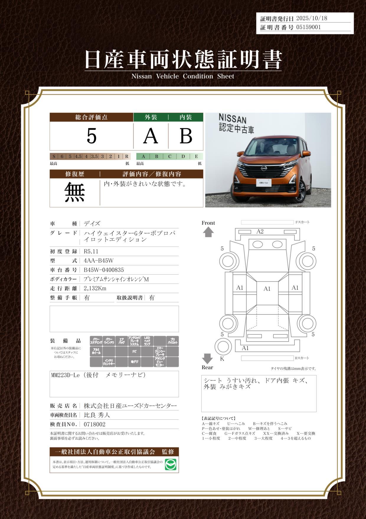 • また、修復歴・法定整備・保証の有無ならびに詳細内容につきましても、必ず各販売店にご確認いただきますようお願いいたします。