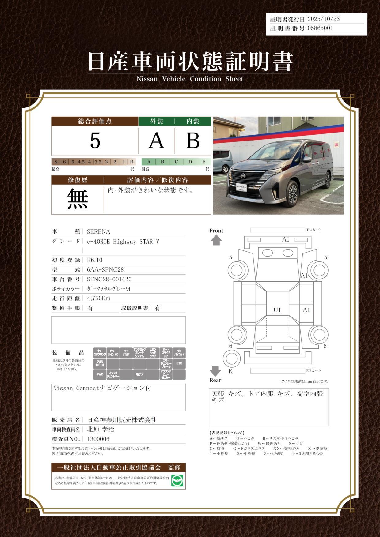 ご納車後 一ヶ月又は1000キロ目安の無料点検がございます。日産プリンス神奈川の61店舗はもちろん、日産整備工場で保証整備が受けられ安心です!納車の際にご予約を承ります、スタッフにご用命下さいませ。