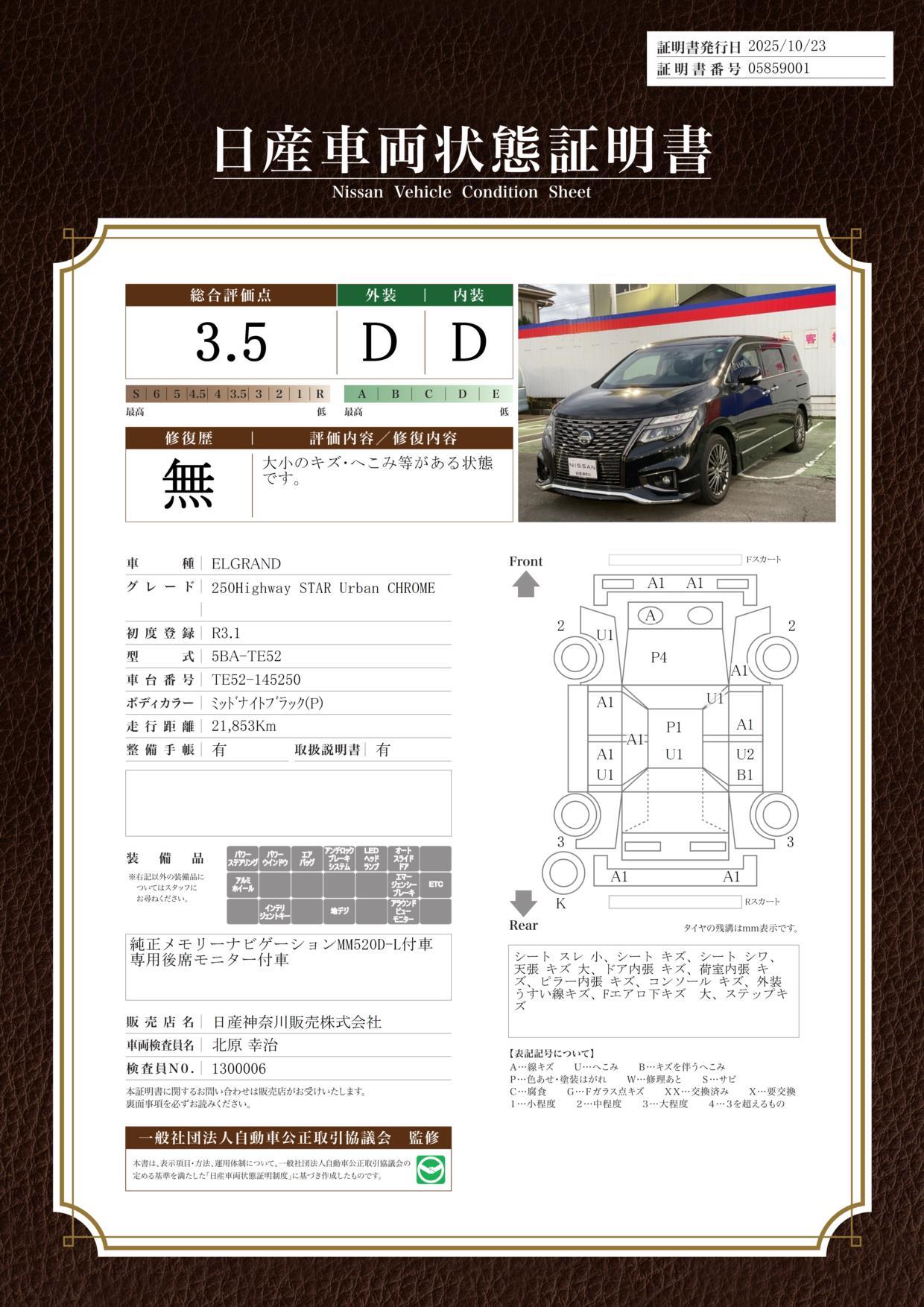 [保証付]:12ヶ月・走行無制限 日産中古車ワイド保証が付いてます。☆保証期間:1年(走行距離無制限)☆中古車1ケ月(又は、1,000キロ走行時)無料点検がございます。☆近所の日産のお店で点検が可能です(要予約)☆全国どこでもOK ! |