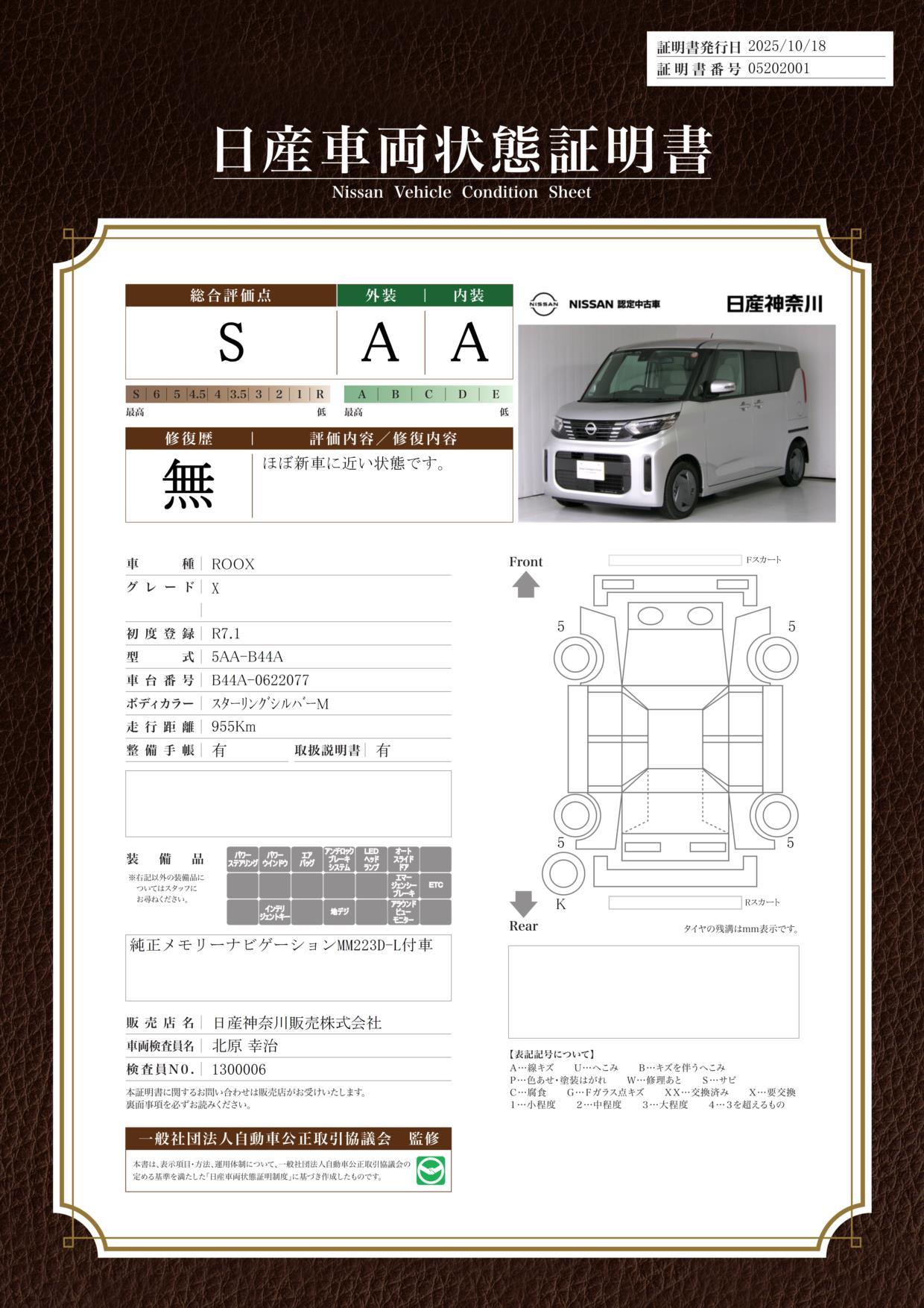 プレミアム認定中古車ならさらに安心走行距離無制限、大切な愛車のパーツ類を2年間無料保証!全国の日産サービス工場をご利用いただけるので、万が一お出掛け先でトラブルが発生しても安心です。(日産車以外もサポートいたします)また、1ヶ月又は1000km走行時に、無料点検を実施