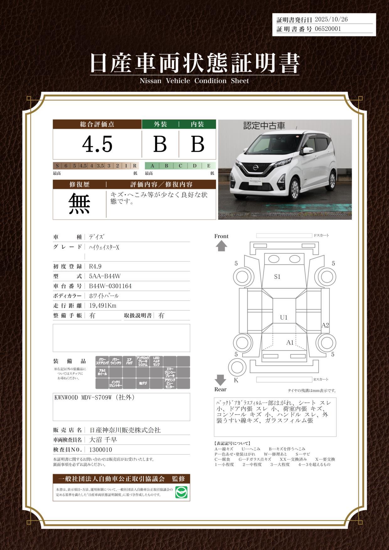 プレミアム認定中古車ならさらに安心走行距離無制限、大切な愛車のパーツ類を2年間無料保証!全国の日産サービス工場をご利用いただけるので、万が一お出掛け先でトラブルが発生しても安心です。(日産車以外もサポートいたします)また、1ヶ月又は1000km走行時に、無料点検を実施