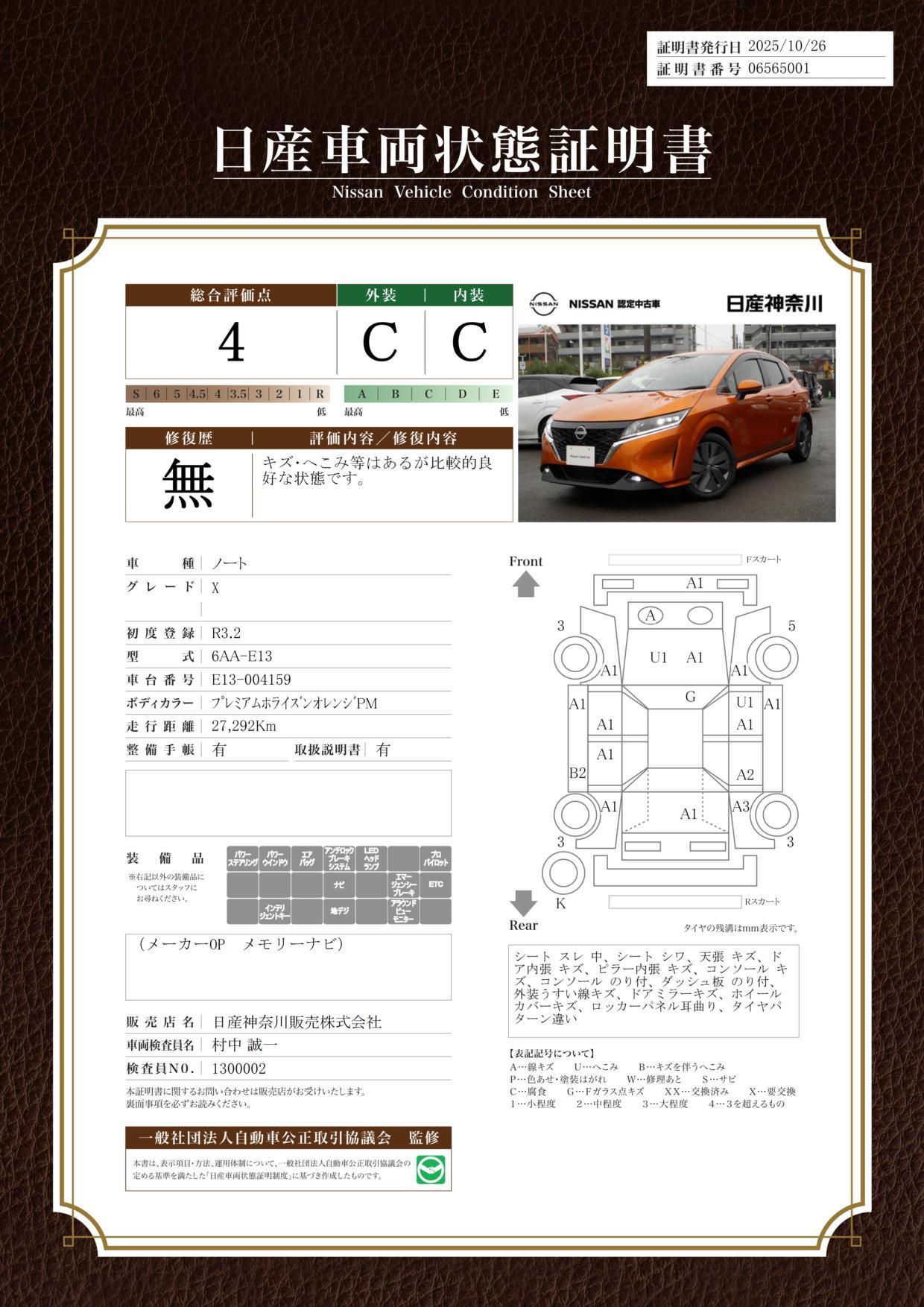 ご納車後 一ヶ月又は1000キロ目安の無料点検がございます。日産プリンス神奈川の61店舗はもちろん、日産整備工場で保証整備が受けられ安心です!納車の際にご予約を承ります、スタッフにご用命下さいませ。