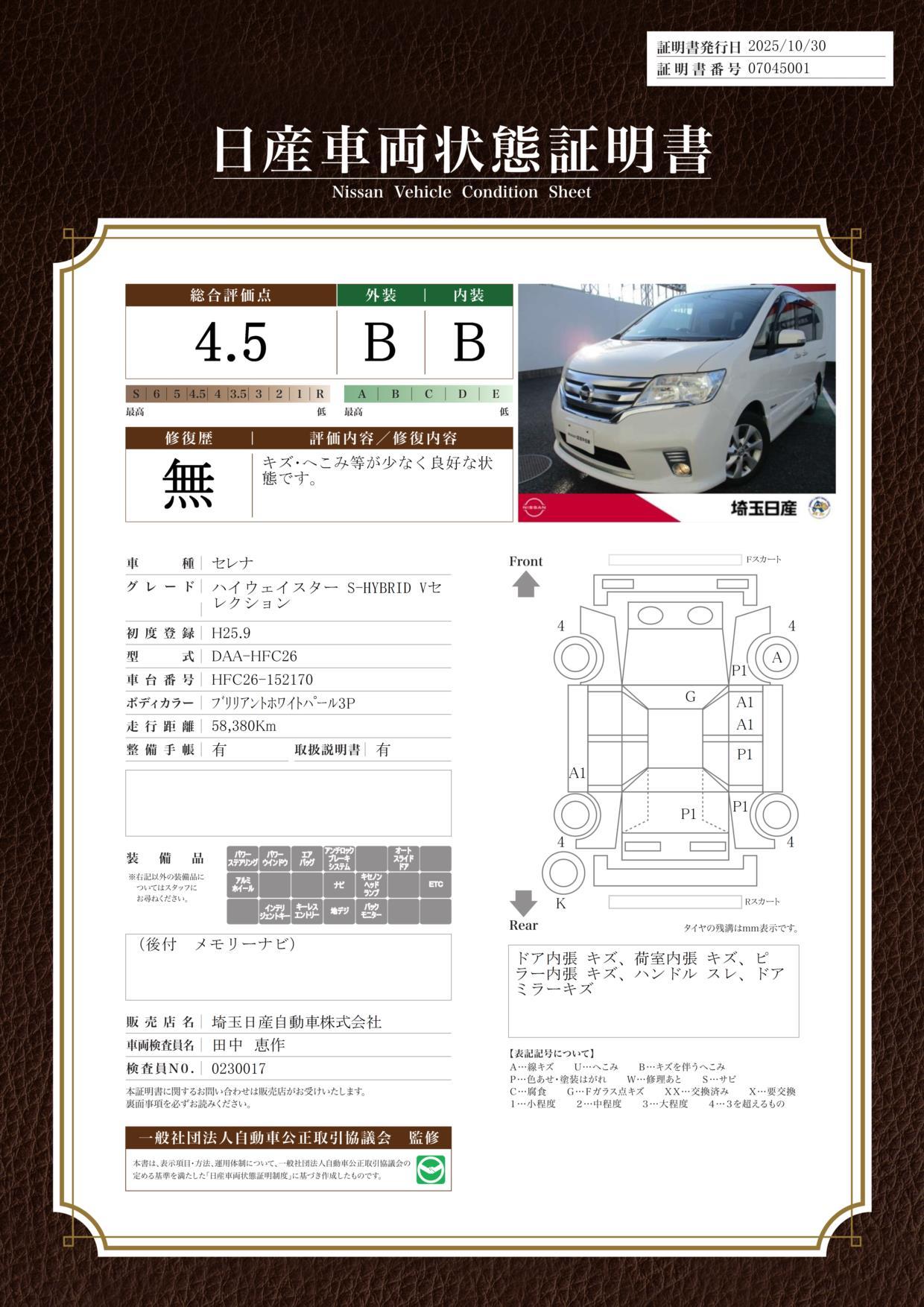 | 保証修理受付先 | 全国約3000箇所の日産ディーラーサービス工場にて修理可能です。 |