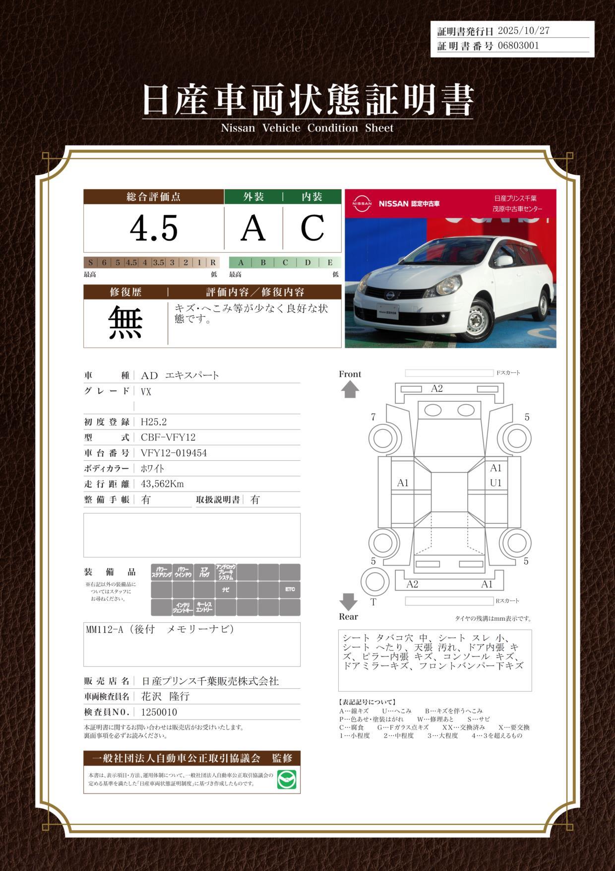 | 保証について | [保証付]:12ヶ月・走行無制限 |
