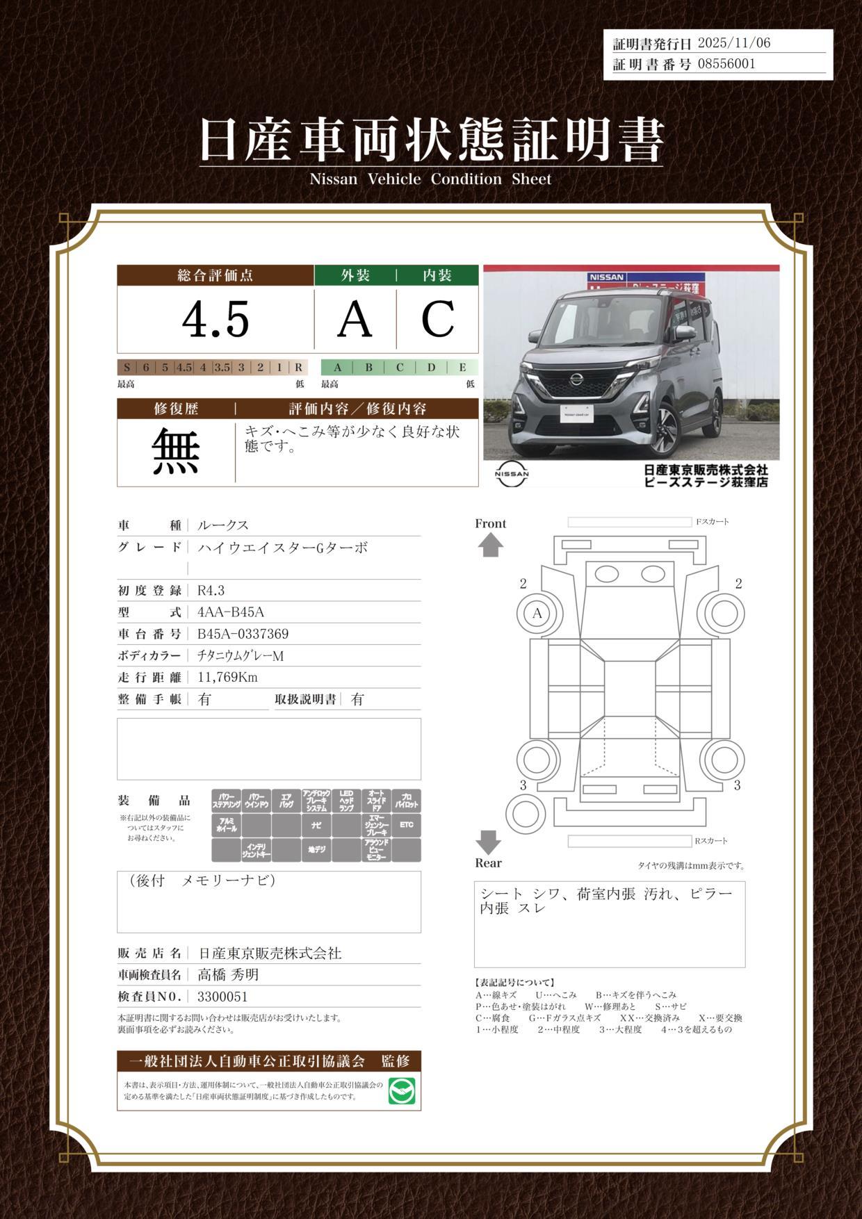 | 保証について | [保証付]:24ヶ月・走行無制限 |