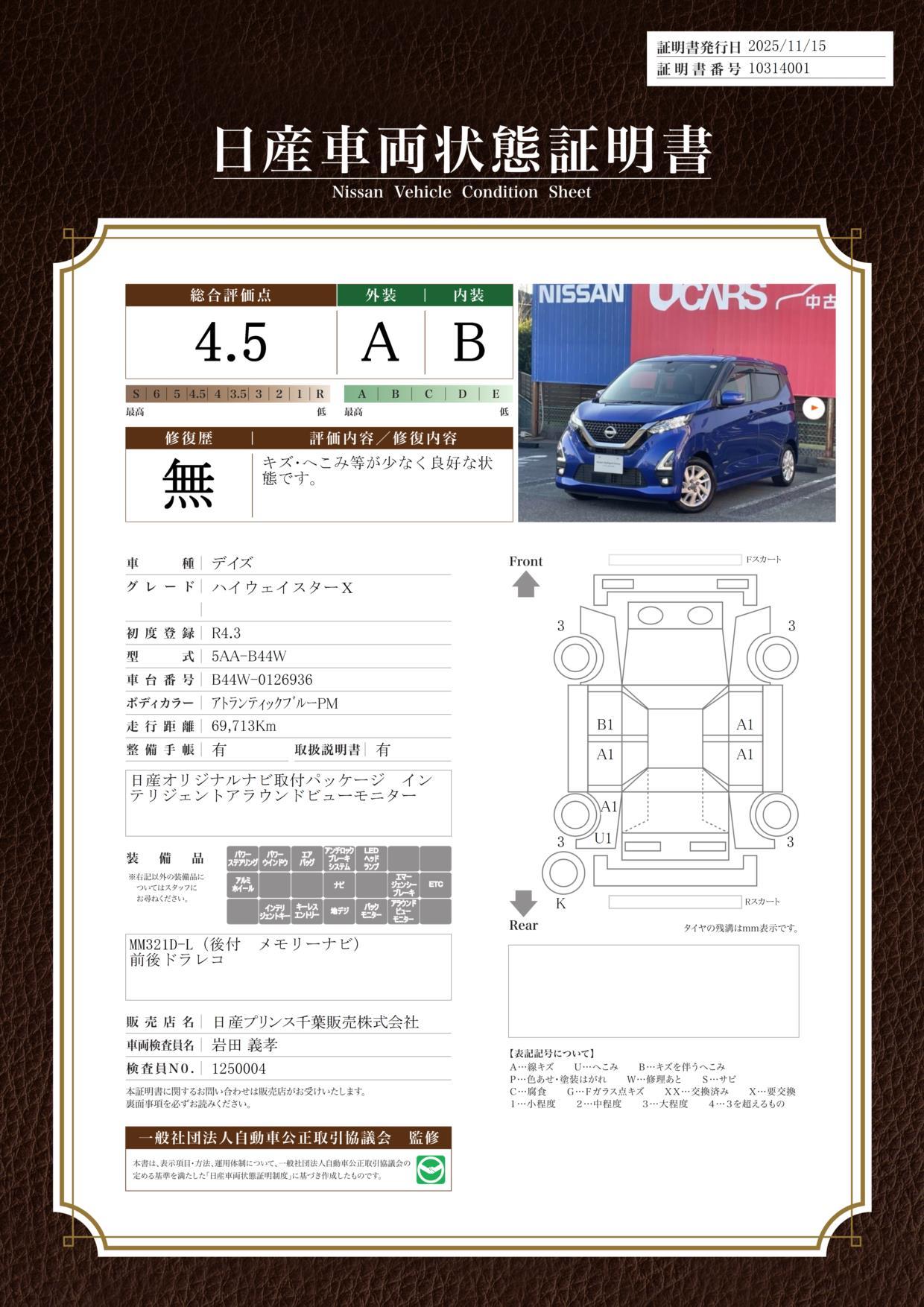 | 保証について | [保証付]:12ヶ月・走行無制限 |