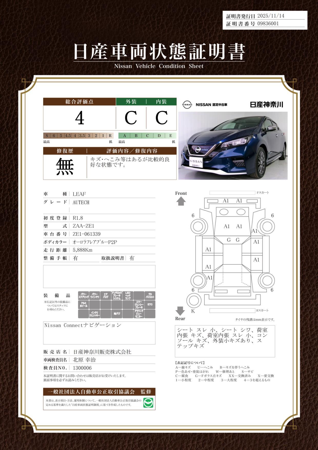 ご納車後 一ヶ月又は1000キロ目安の無料点検がございます。日産神奈川の121店舗はもちろん、日産整備工場で保証整備が受けられ安心です!納車の際にご予約を承ります、スタッフにご用命下さいませ。
