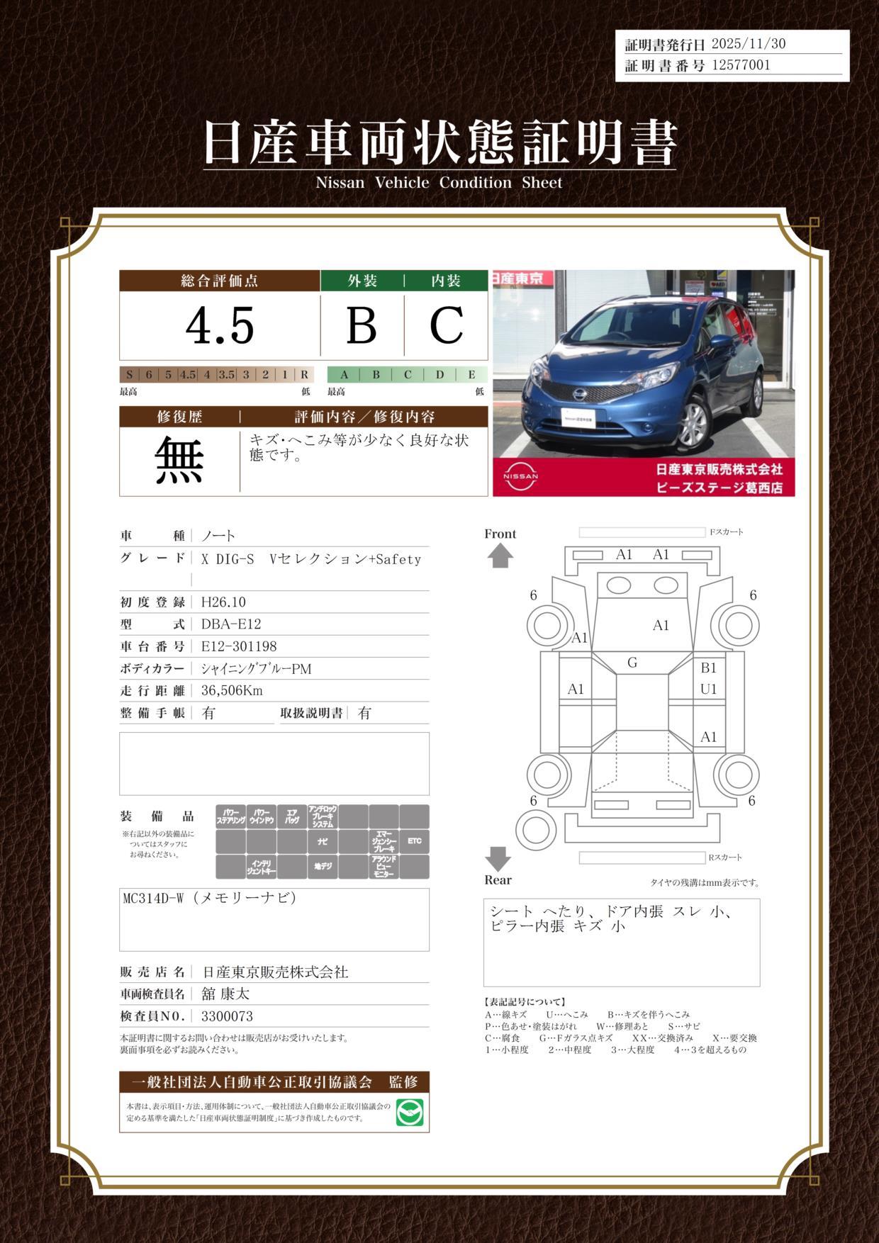 | 保証について | [保証付]:12ヶ月・走行無制限 |