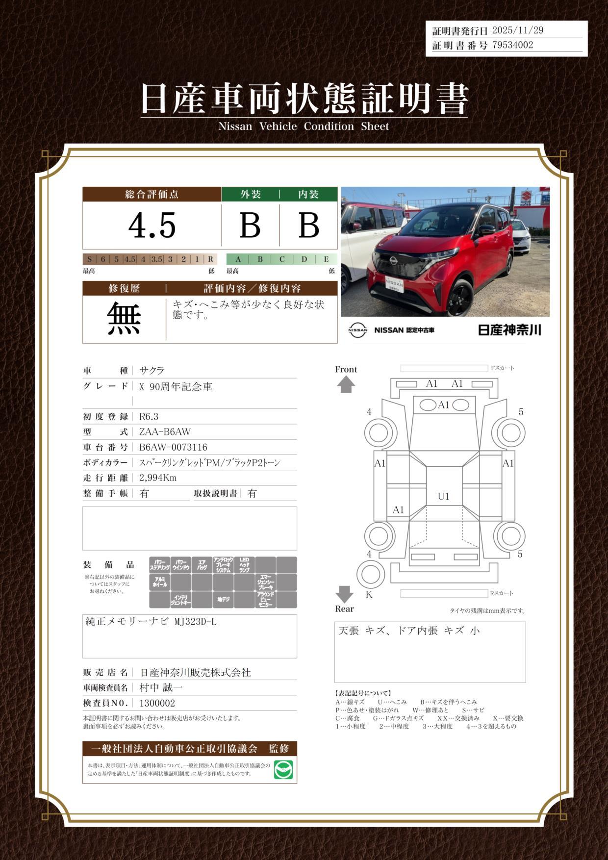 ご納車後 一ヶ月又は1000キロ目安の無料点検がございます。日産神奈川の119店舗はもちろん、全国の日産整備工場で保証整備が受けられ安心です!納車の際にご予約を承ります、スタッフにご用命下さいませ。