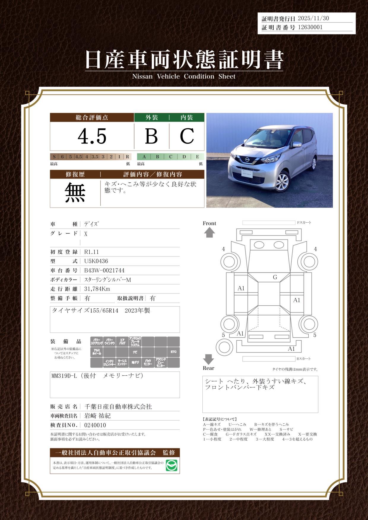 当店の中古車は保証が充実。走行距離無制限の無料保証が最大2年付帯しているので安心です。 また万が一の場合も千葉県内46拠点の当社サービス工場で、点検&修理することが可能です。 遠方の方でも全国2,000以上の日産サービス工場があなたの愛車をサポートいたします。