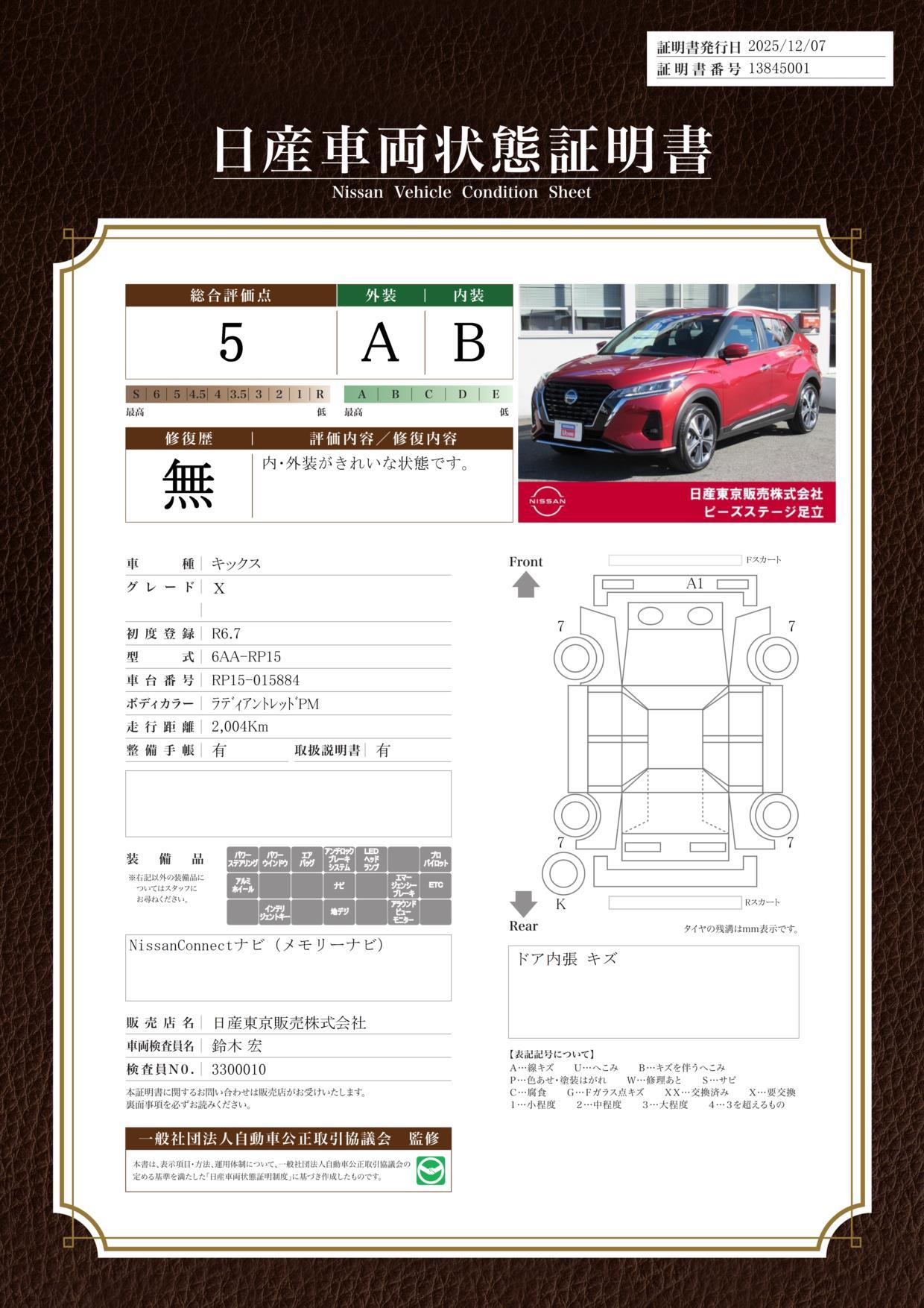 日産 キックス X プロパイロット アラウンドビュー 寒冷地PKG ETC2.0 前中ドラレコ スマートルームミラー ニーエアバック エマブレ 踏み間違い VDC LDP USB BT MS フルセグ インテリキー