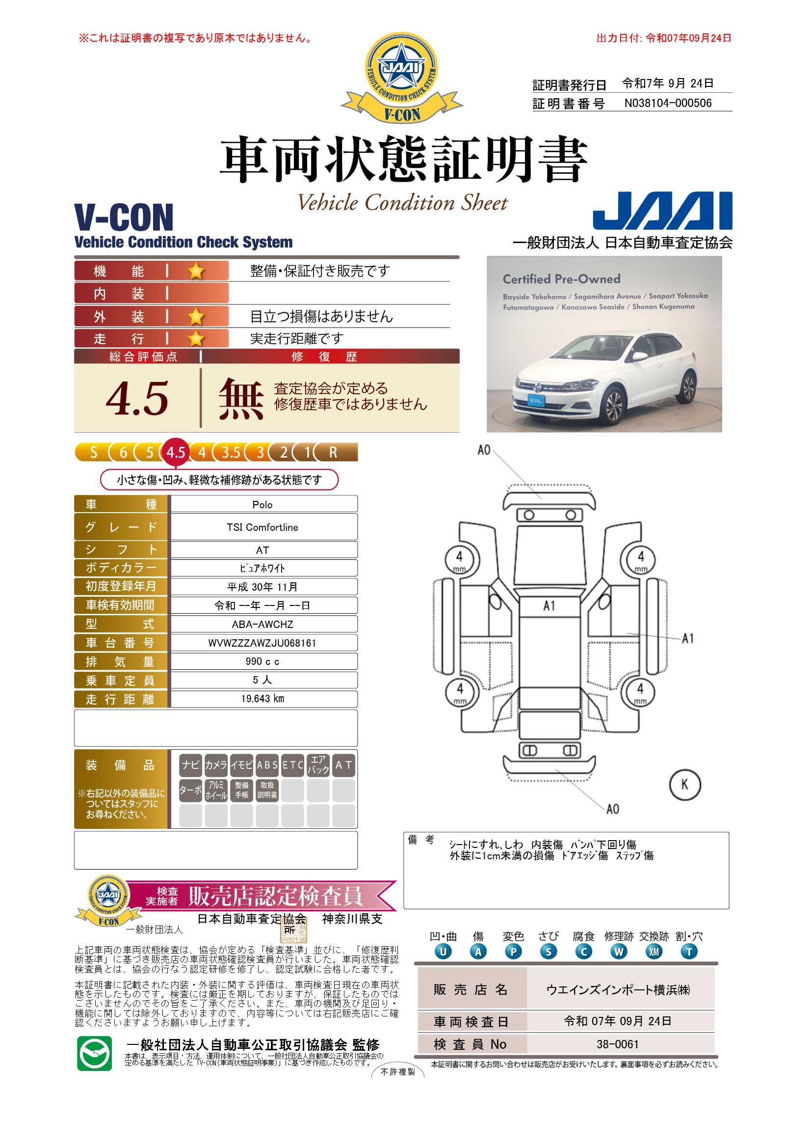 [保証付]:12ヶ月・走行無制限 距離無制限の保証とロードアシスタンスサービスが全車に付帯されています。また延長保証(有償)もご利用頂けます。全国のフォルクスワーゲンディーラーでサービスの受付が可能ですので遠方のお客様もご安心下さい。 |