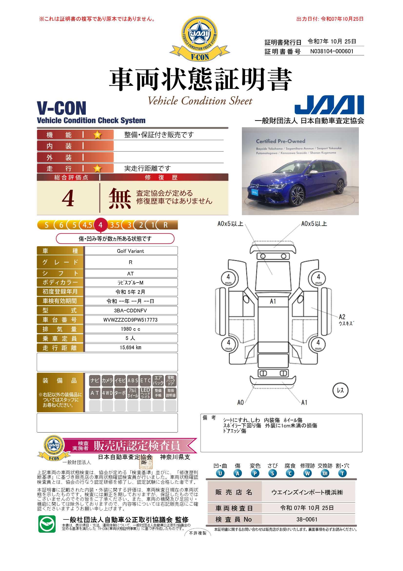 [保証付]:2027(令和9)年2月まで・走行無制限 距離無制限の保証とロードアシスタンスサービスが全車に付帯されています。また延長保証(有償)もご利用頂けます。全国のフォルクスワーゲンディーラーでサービスの受付が可能ですので遠方のお客様もご安心下さい。 |