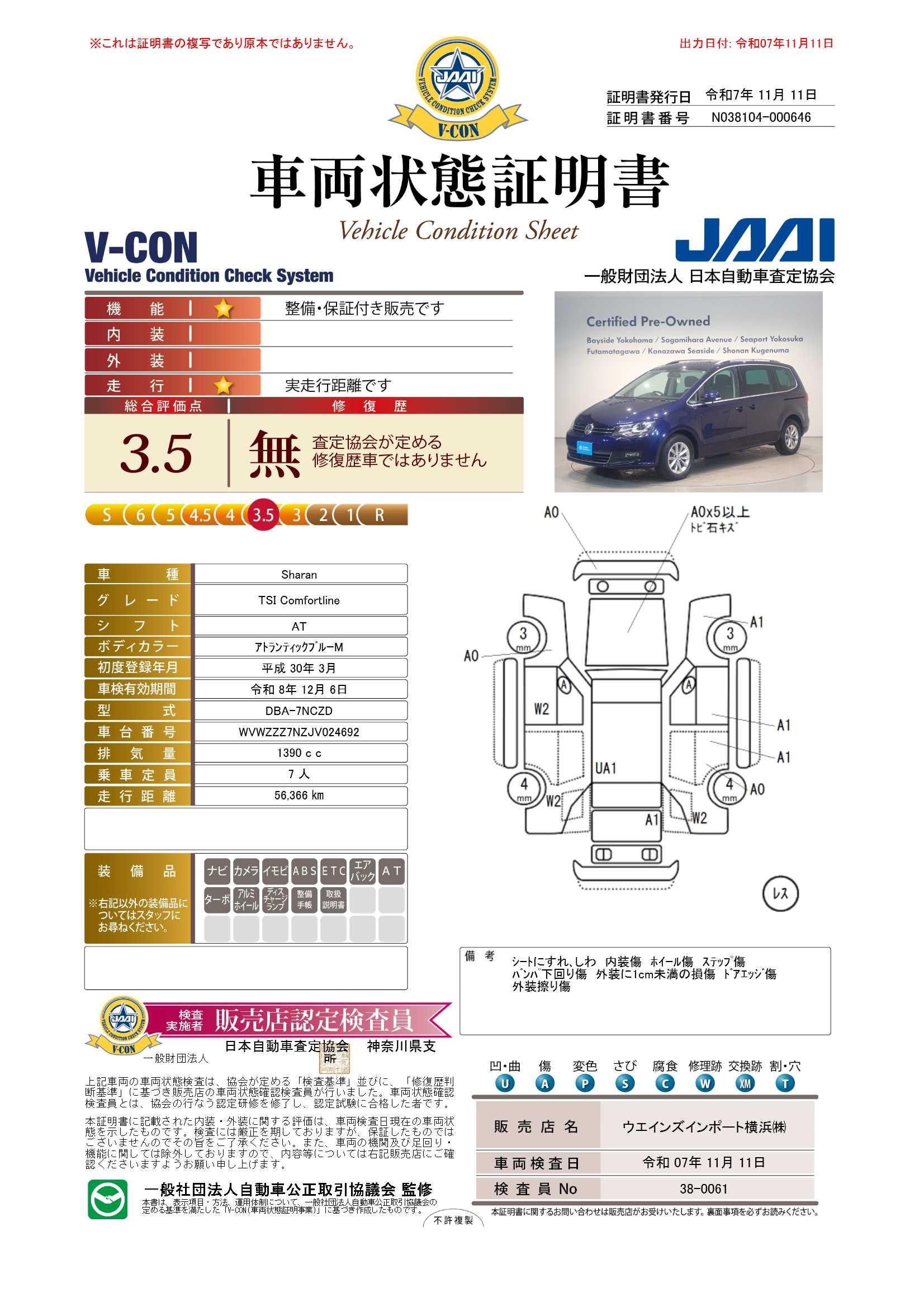 [保証付]:12ヶ月・走行無制限 距離無制限の保証とロードアシスタンスサービスが全車に付帯されています。また延長保証(有償)もご利用頂けます。全国のフォルクスワーゲンディーラーでサービスの受付が可能ですので遠方のお客様もご安心下さい。 |