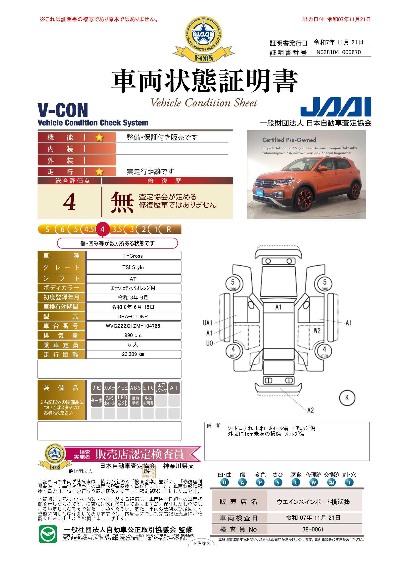 [保証付]:12ヶ月・走行無制限 距離無制限の保証とロードアシスタンスサービスが全車に付帯されています。また延長保証(有償)もご利用頂けます。全国のフォルクスワーゲンディーラーでサービスの受付が可能ですので遠方のお客様もご安心下さい。 |
