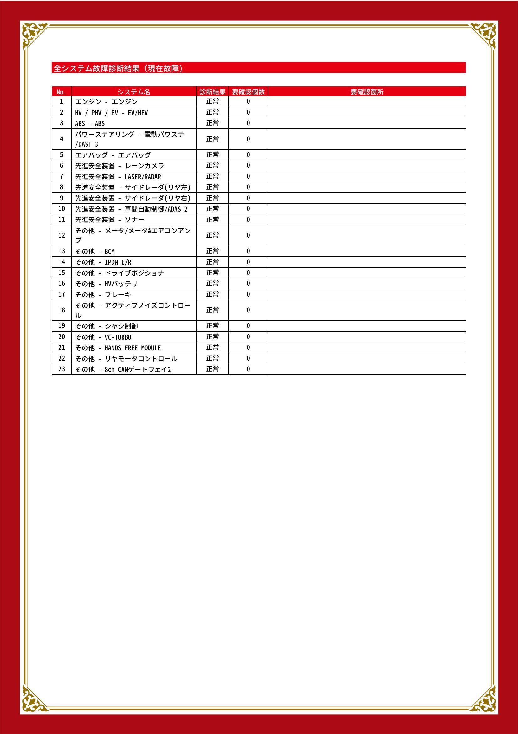 | 保証項目 | 納車後1ヶ月・1000km以内は36機構・343項目を保証いたします。詳しくは販売店までお問い合わせ下さい。 |
