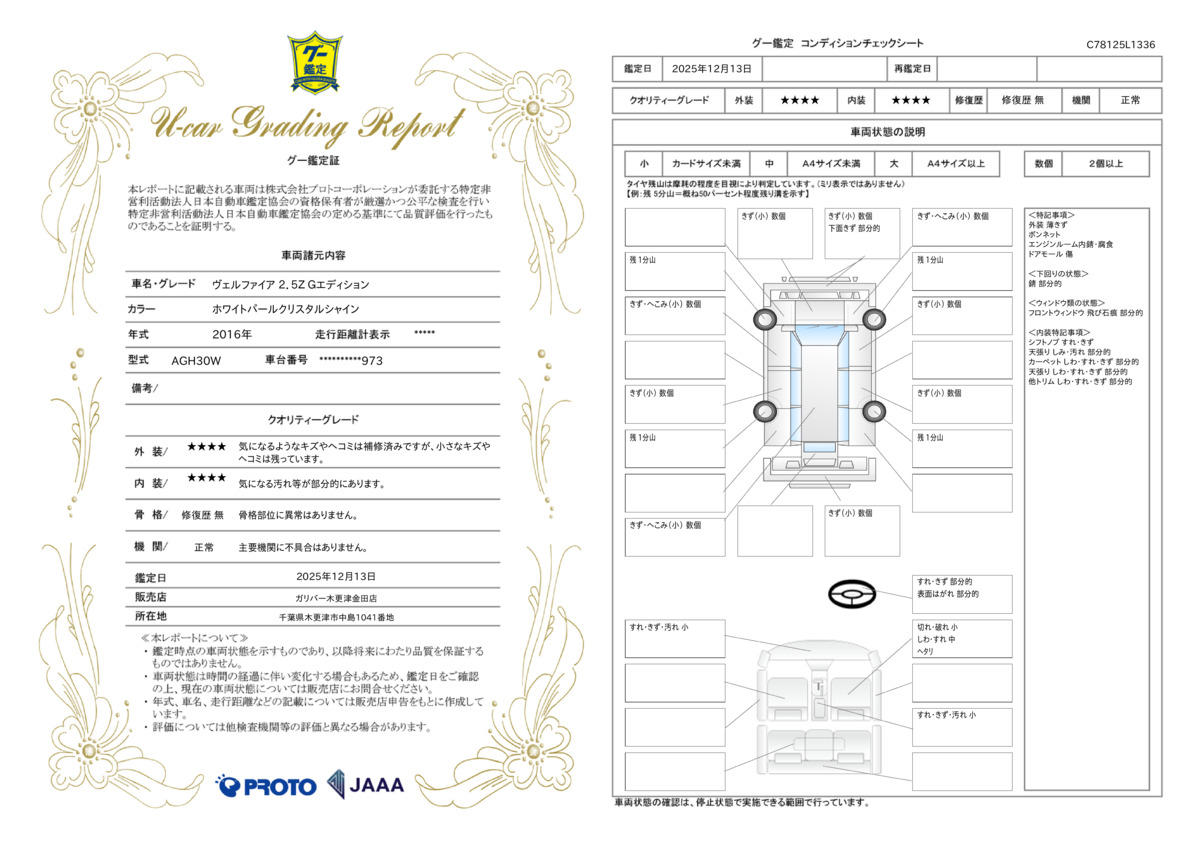 | 保証修理受付先 | ●当店までご連絡ください。ご遠方の方は当店で受付後、お近くのガリバー店舗または修理工場のご案内をいたしますので、お気軽にお申し付けください。 |