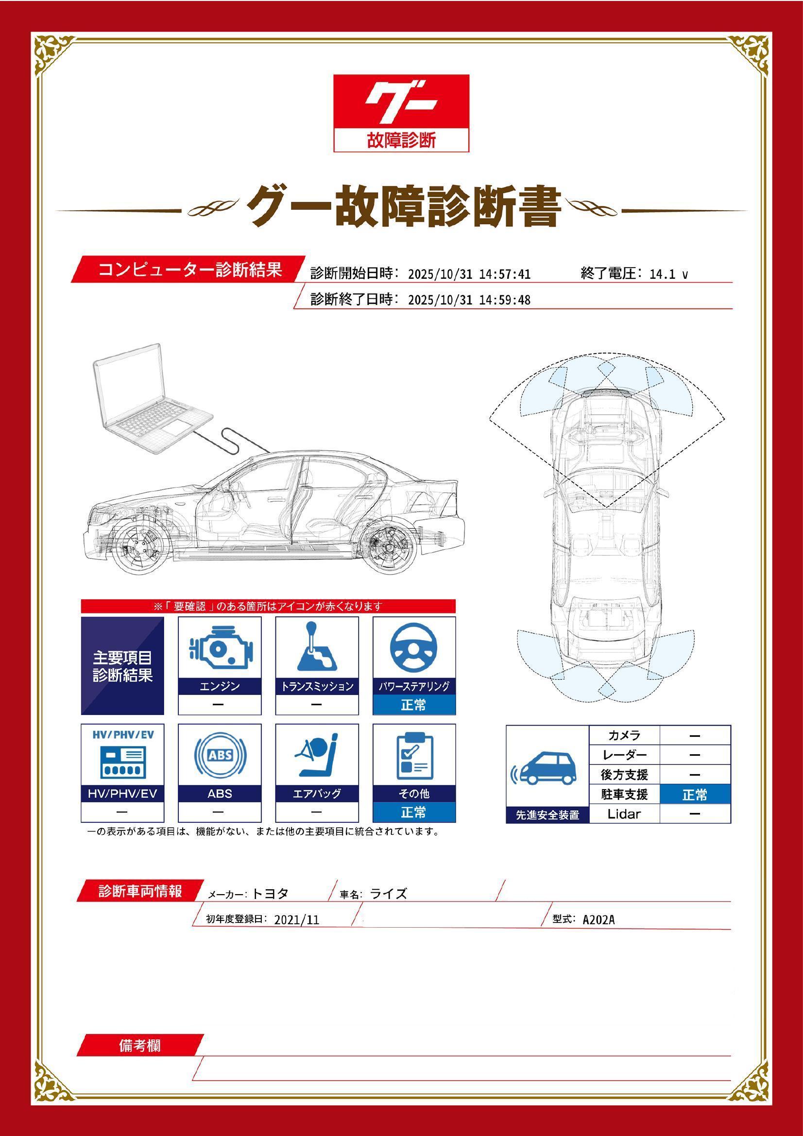 | 保証項目 | 保証項目はスタッフまでお気軽にお問い合わせください。 |