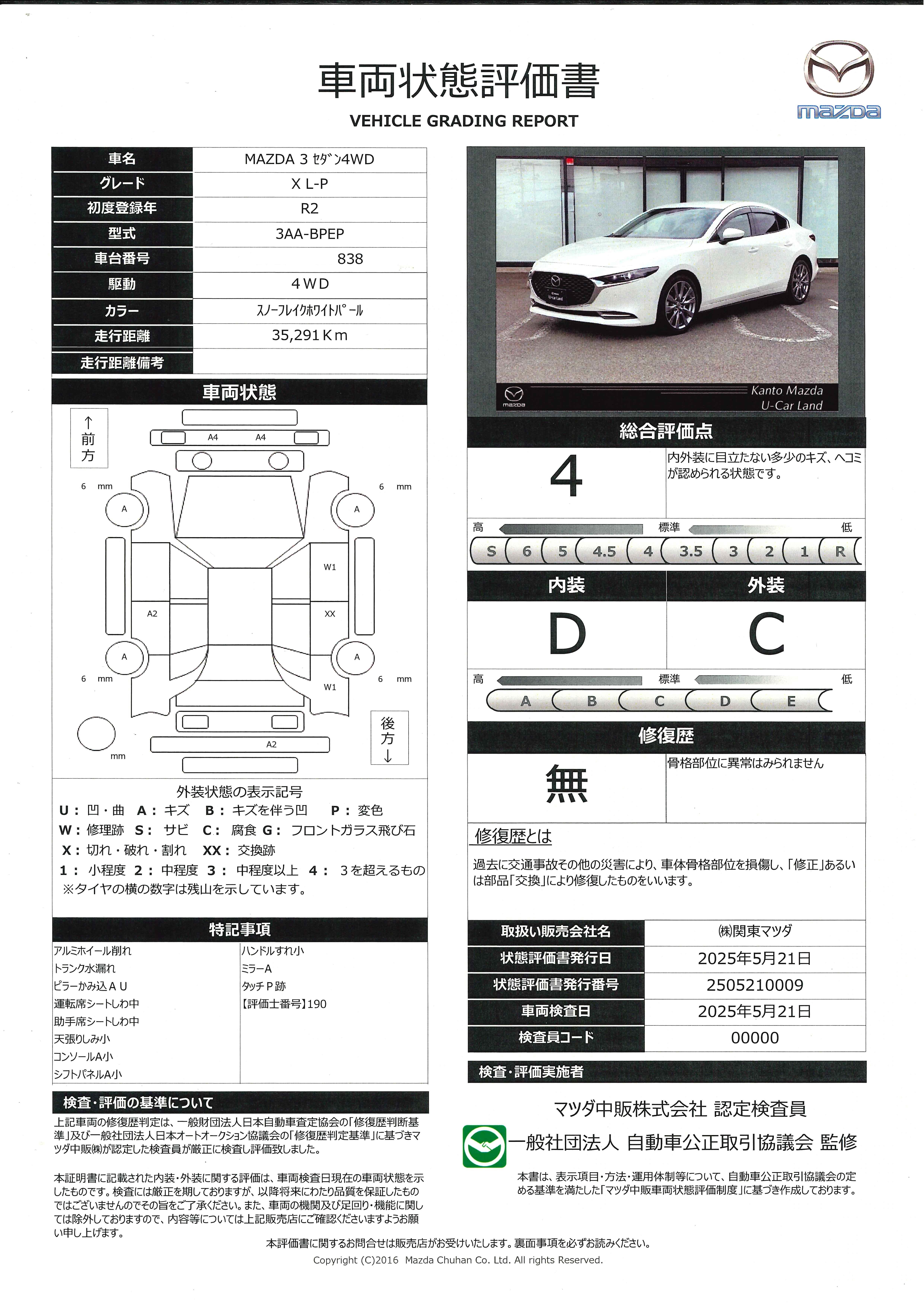 [保証付]:12ヶ月・走行無制限 さわやか保証 マツダさわやか保証(引渡日から1年間 走行無制限)つき。別途、有償延長保証も取り扱っております。 |