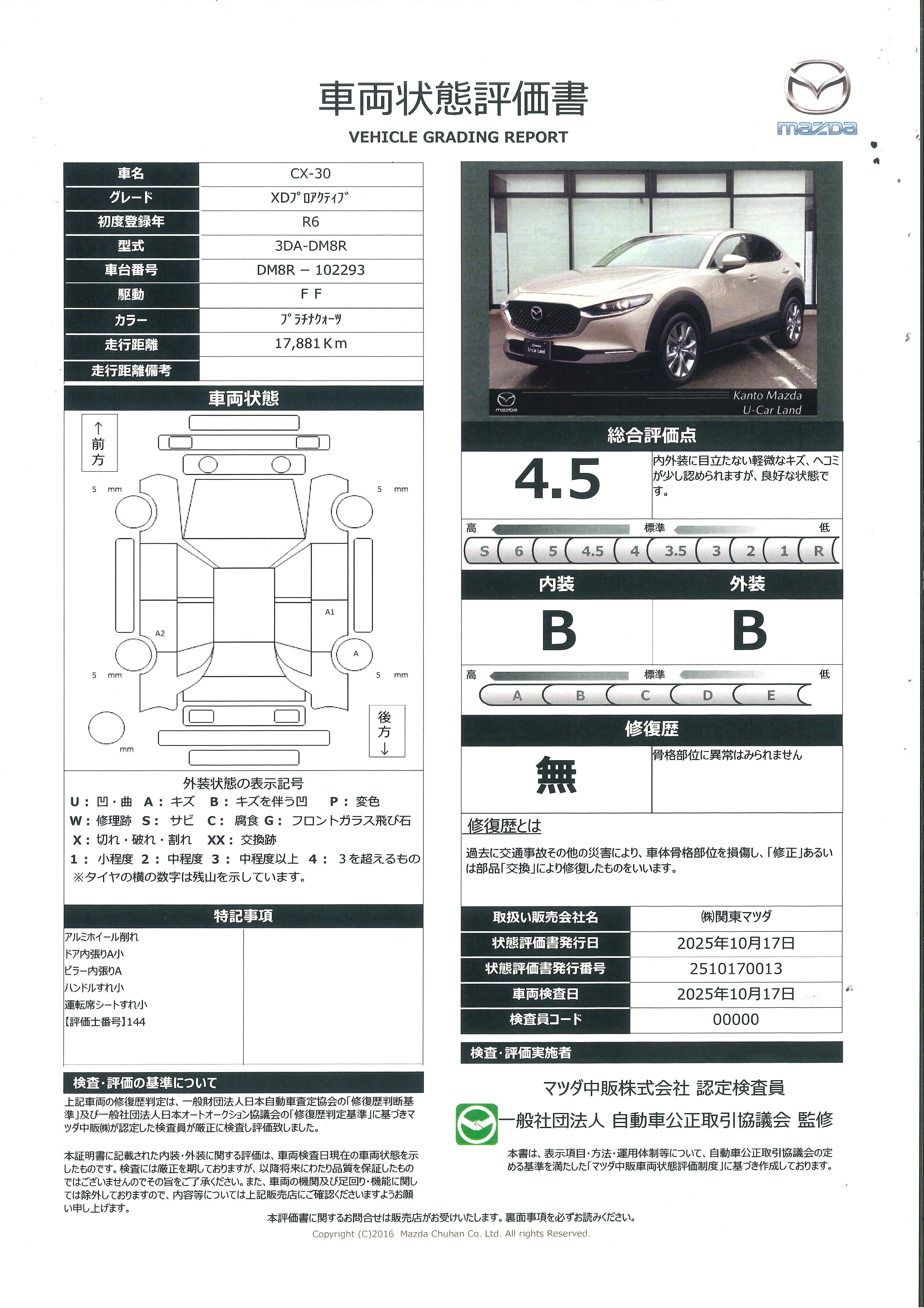 [保証付]:2027(令和9)年1月まで・60000km ※いずれか早い時期が保証適用の条件となります。 新車保証継承 全国のマツダ販売店(離島は除く)にて保証修理対応可能です!詳しくは店舗スタッフまで! |