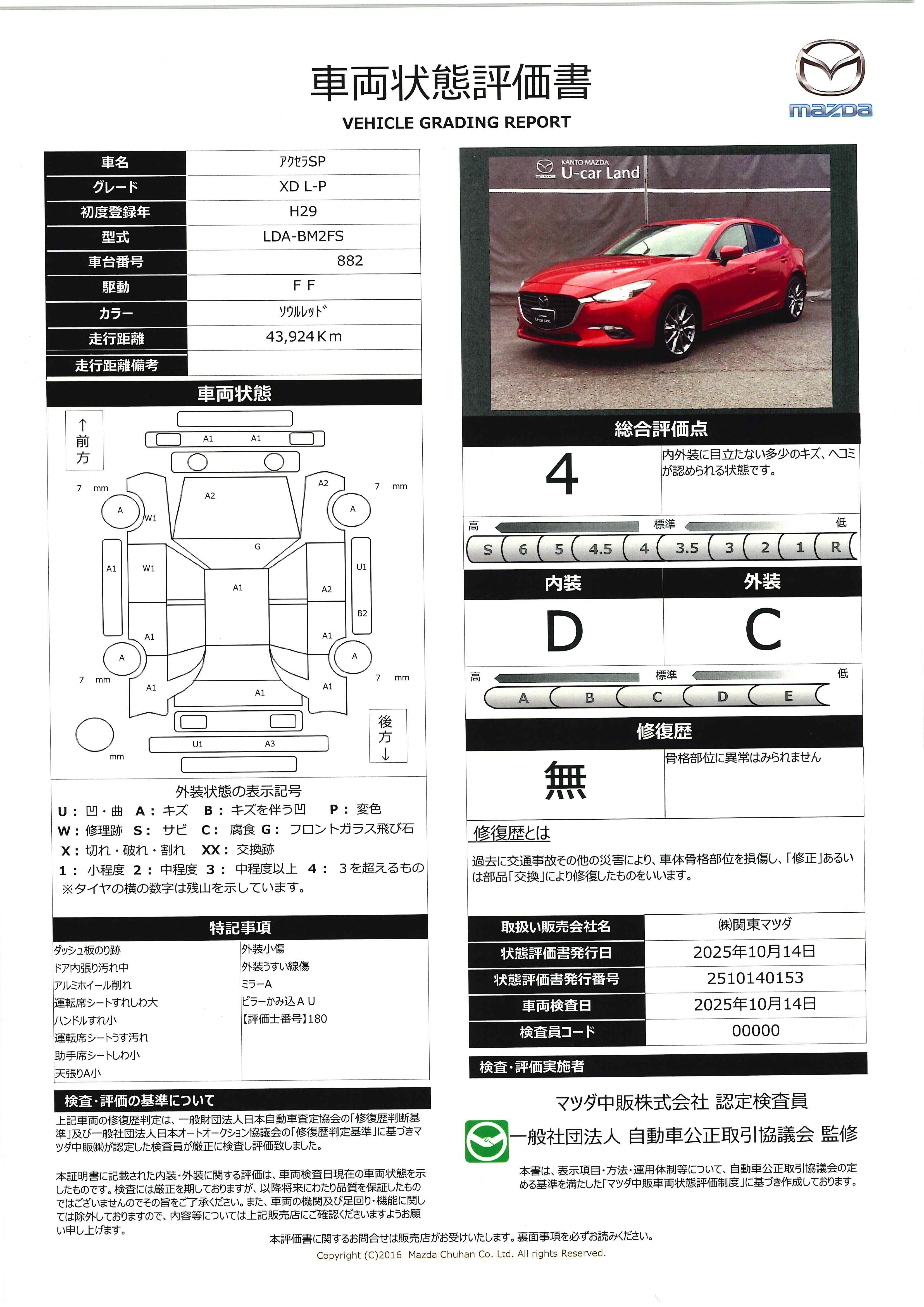 [保証付]:6ヶ月・10000km ※いずれか早い時期が保証適用の条件となります。 パートナー保証 全国のマツダ販売店(離島は除く)にて保証修理対応可能です!詳しくは店舗スタッフまで! |