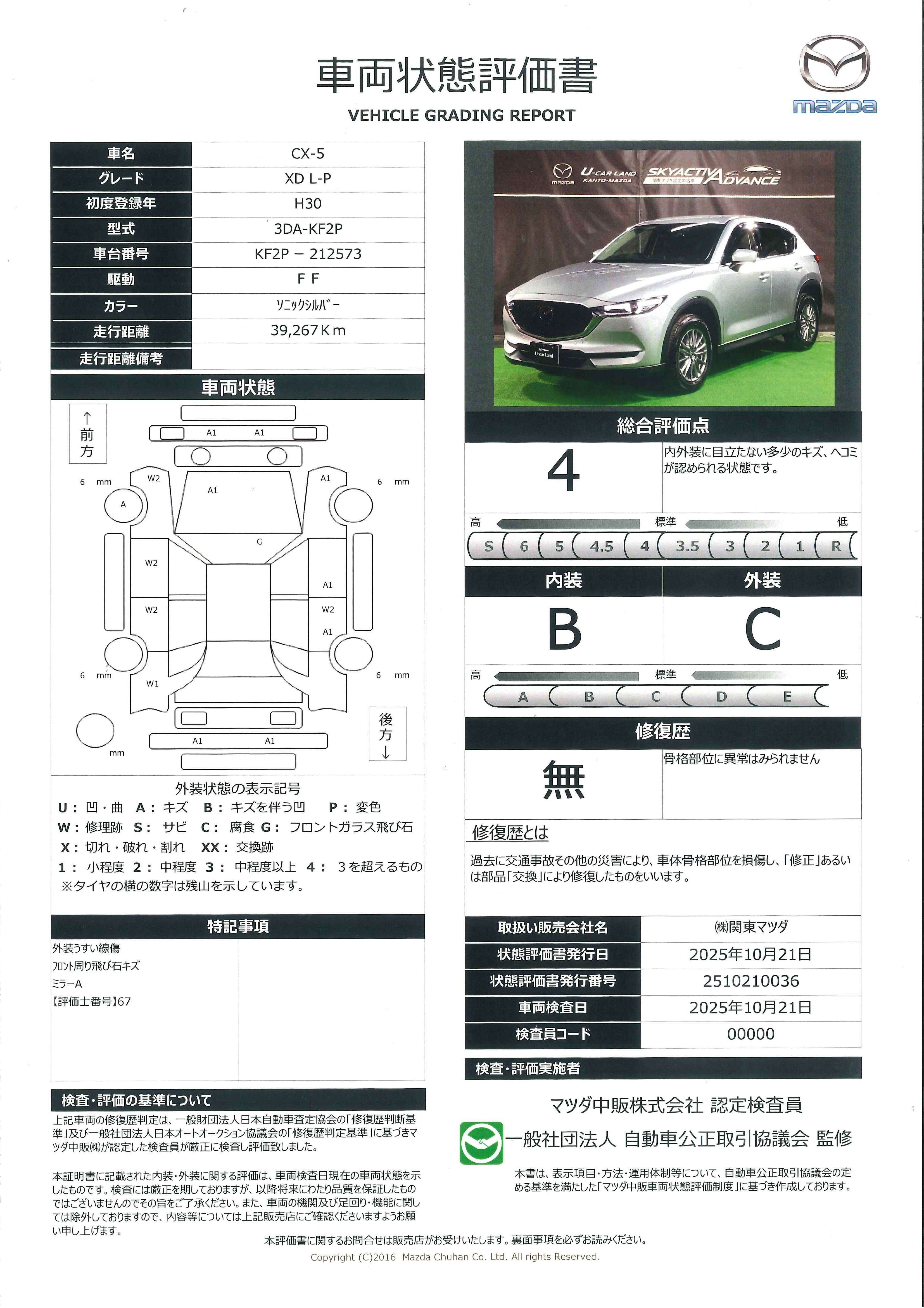 ・12ヶ月点検、又は、車検整備に相当する商品化整備を実施・納車後、1ヶ月後に無料点検整備を実施・全国のマツダディーラー共通のメンテナンスノートを発行・全国のマツダサービス網による万全のサポート体制※マツダ車のみ適用 ※保証内容詳細はスタッフにお問い合わせください。