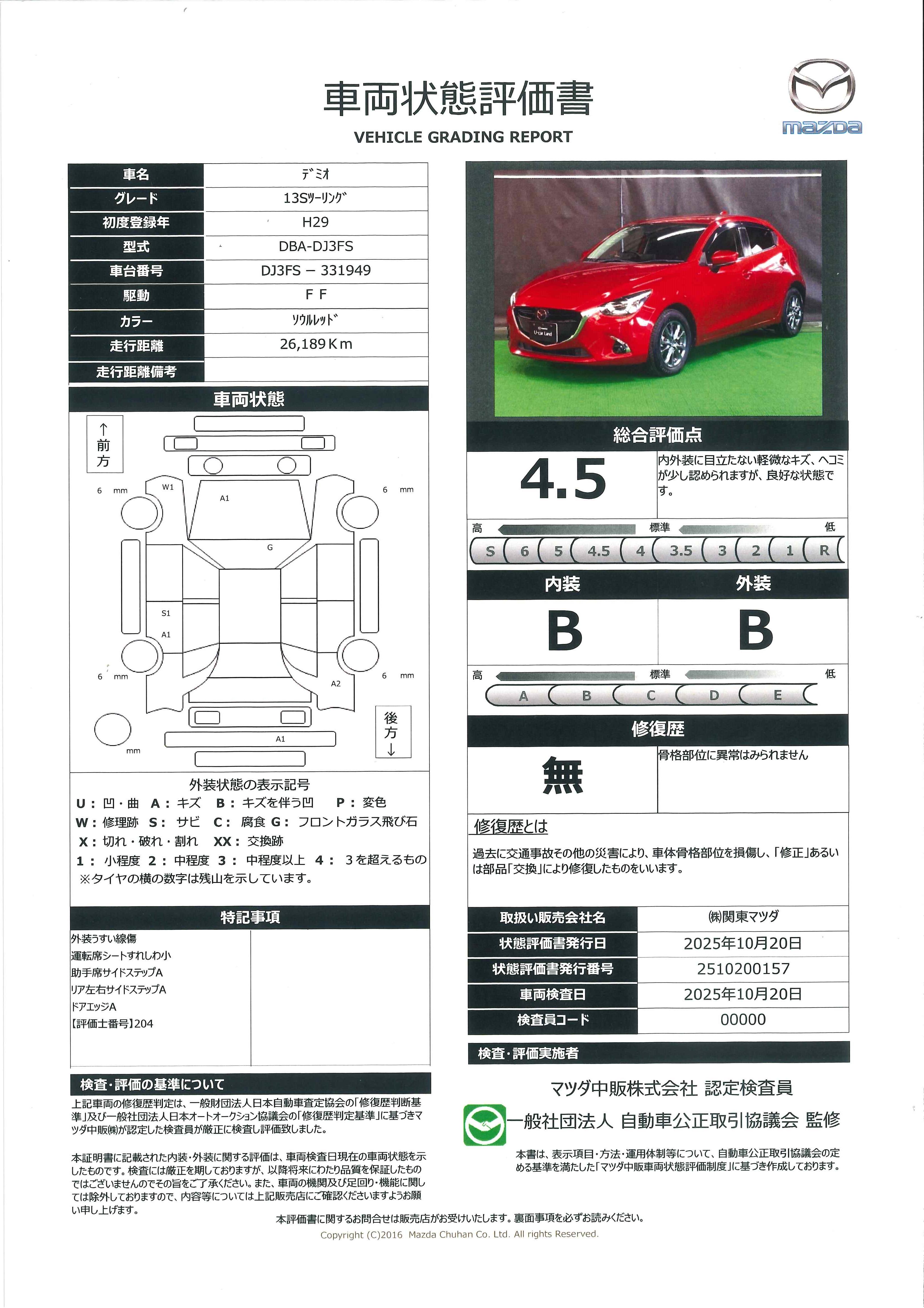 [保証付]:6ヶ月・10000km ※いずれか早い時期が保証適用の条件となります。 パートナー保証 全国のマツダ販売店(離島は除く)にて保証修理対応可能です!詳しくは店舗スタッフまで! |