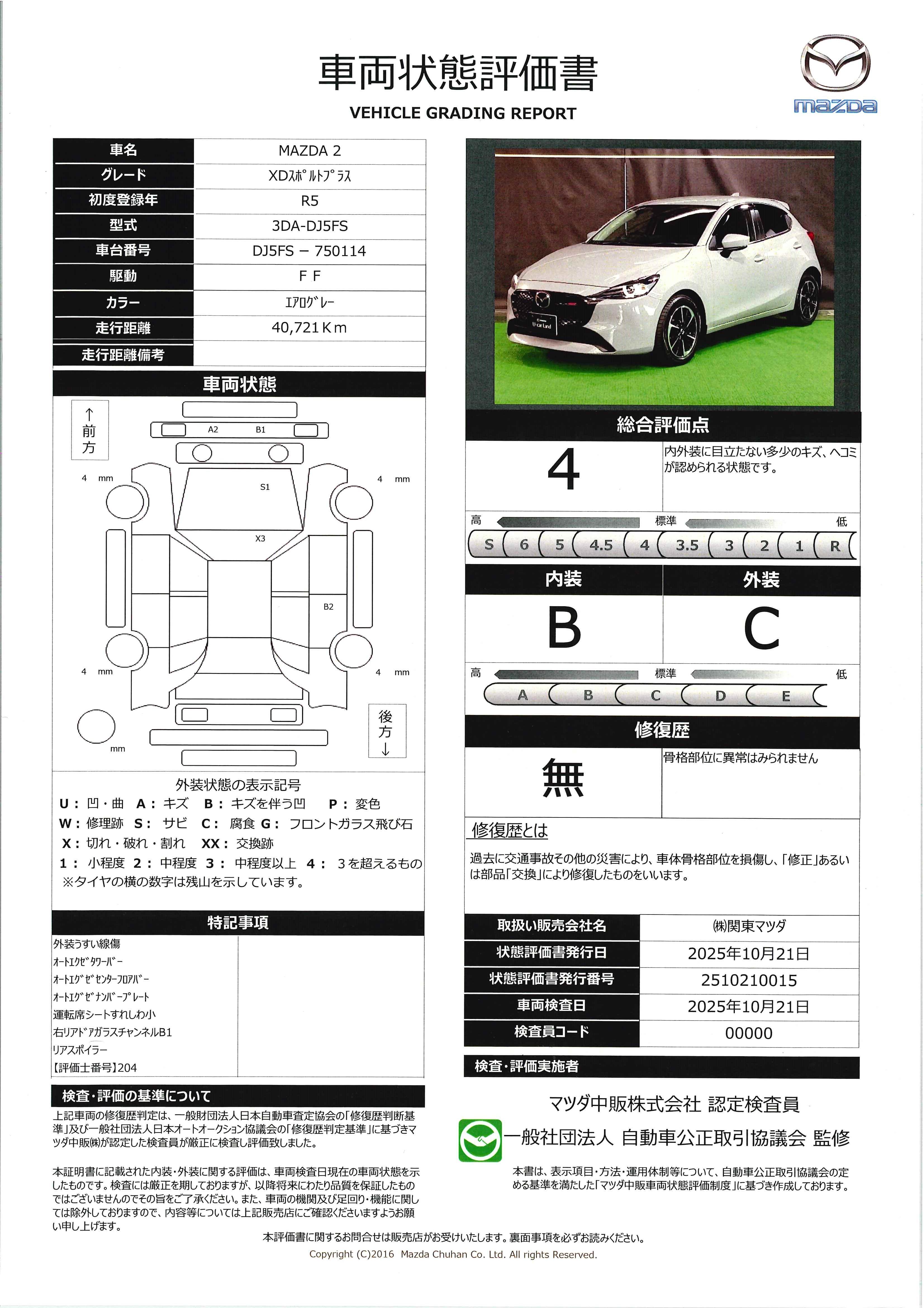 ・12ヶ月点検、又は、車検整備に相当する商品化整備を実施・納車後、1ヶ月後に無料点検整備を実施・全国のマツダディーラー共通のメンテナンスノートを発行・全国のマツダサービス網による万全のサポート体制※マツダ車のみ適用 ※保証内容詳細はスタッフにお問い合わせください。